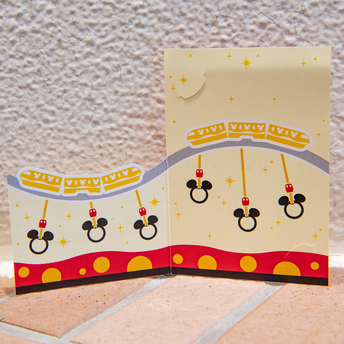 台紙にはディズニーリゾートラインに登場した新車輌「リゾートライナー(Type C)」のつり革と座席シートがデザインされています。
