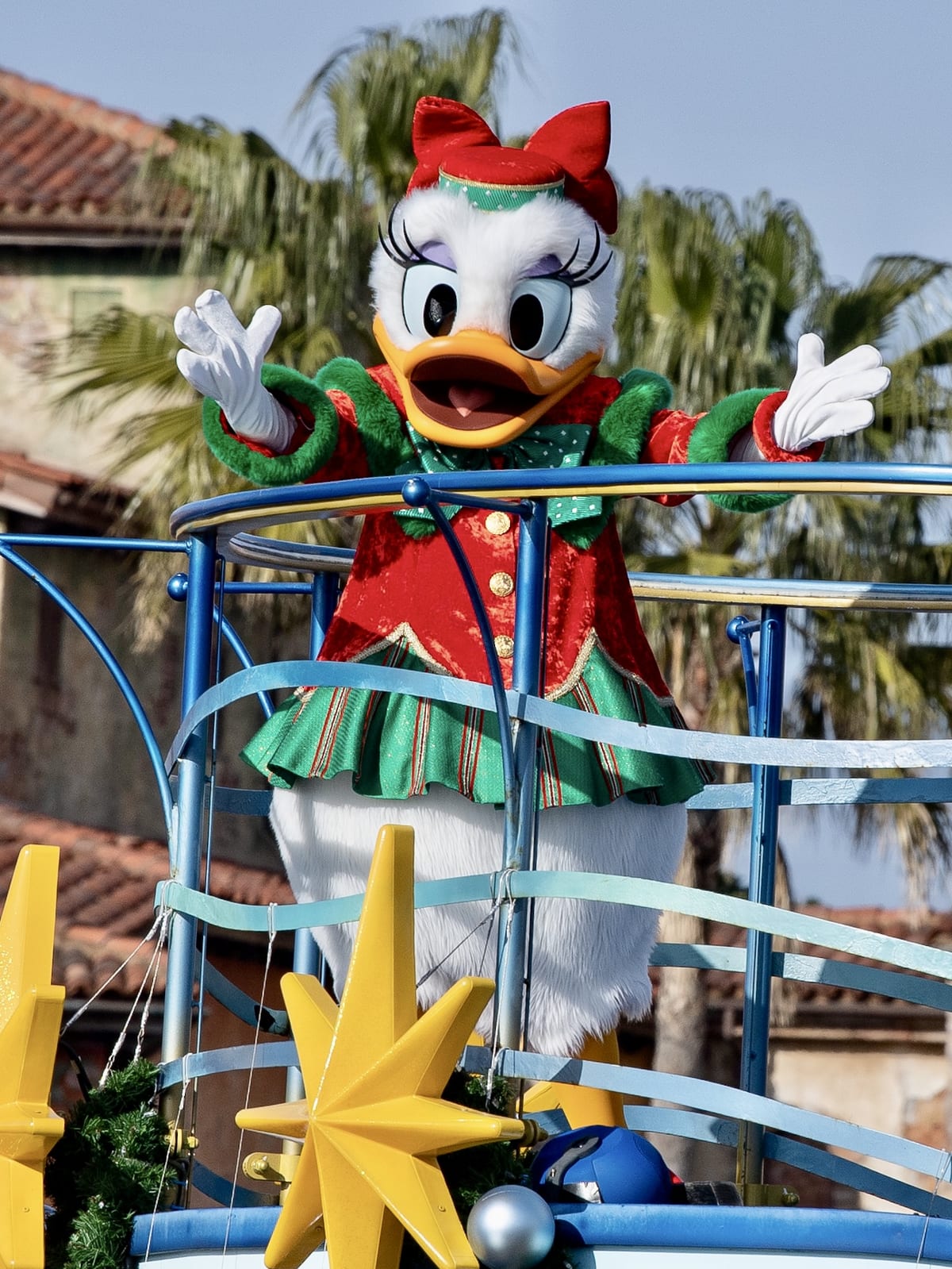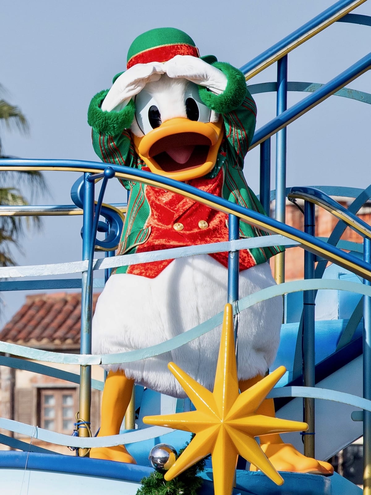 クリスマスの装いのミッキーマウスたちが船の上からゲストにごあいさつしてくれます☆
