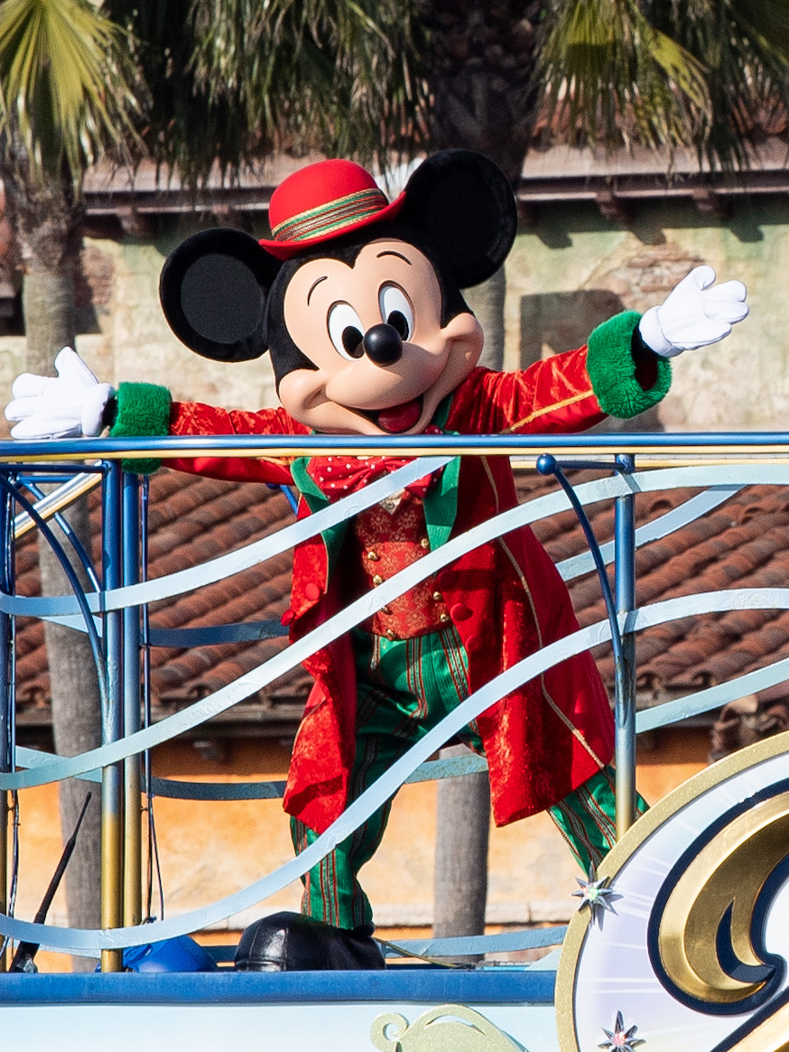 12月10日から12月25日までの16日間は「パーフェクト・クリスマス」コスチュームの「ミッキーマウス」たちが登場!
