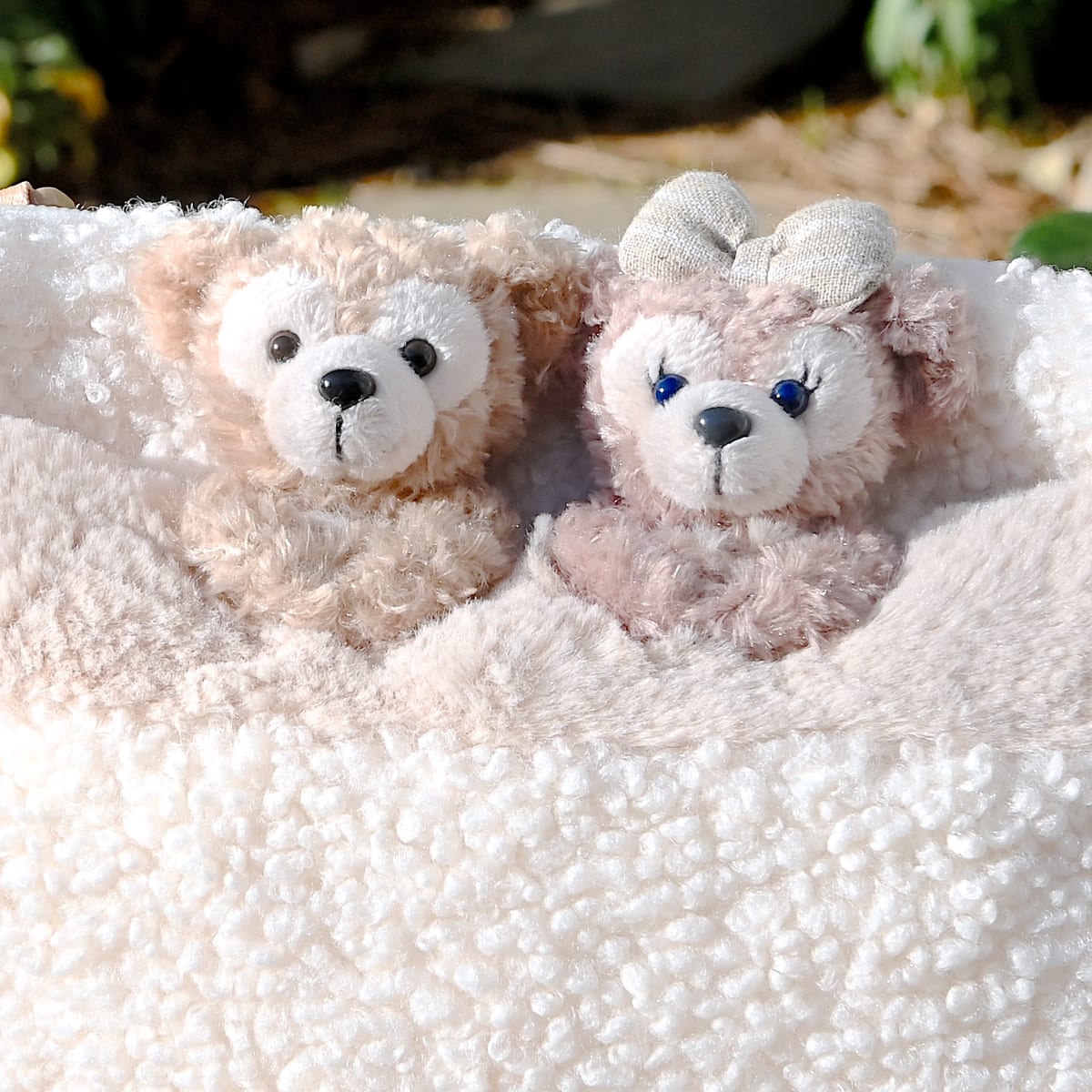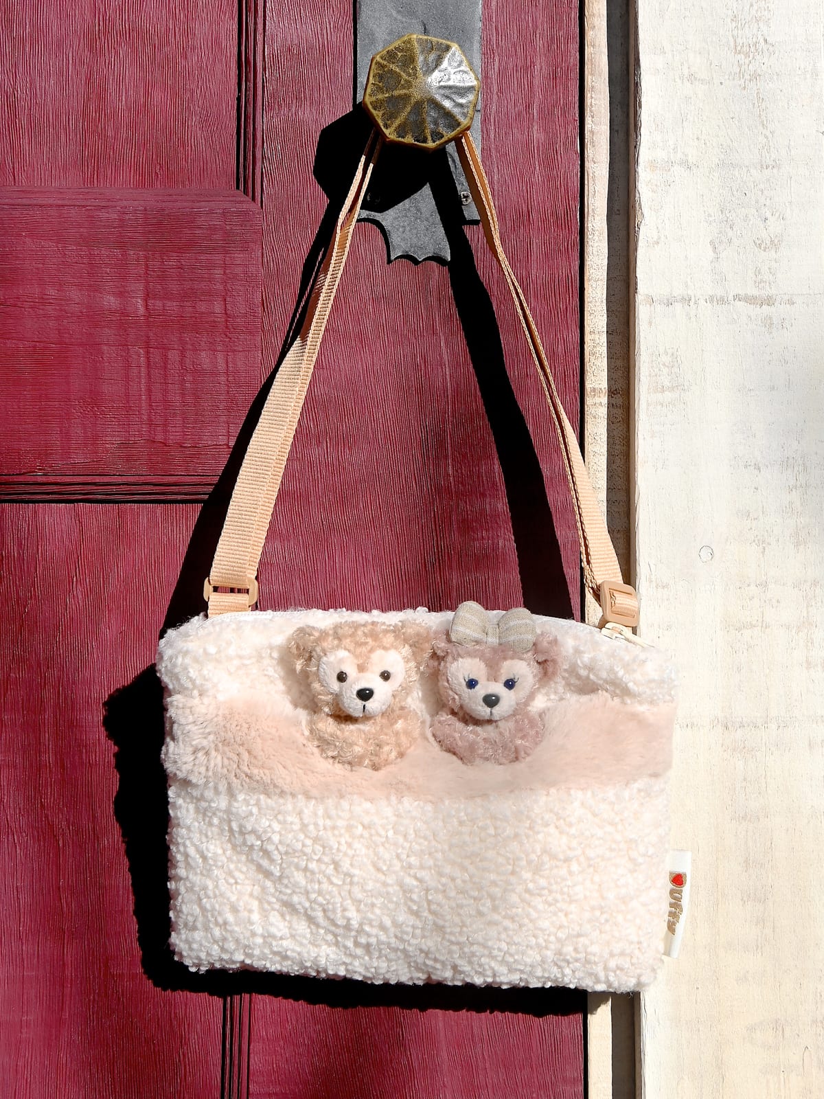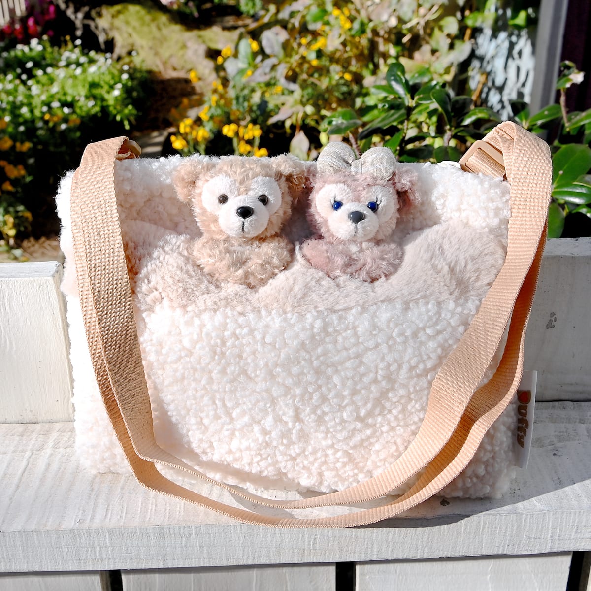 ふわもこなショルダーバッグからダッフィーとシェリーメイがお顔をのぞかせているかわいいデザイン☆
