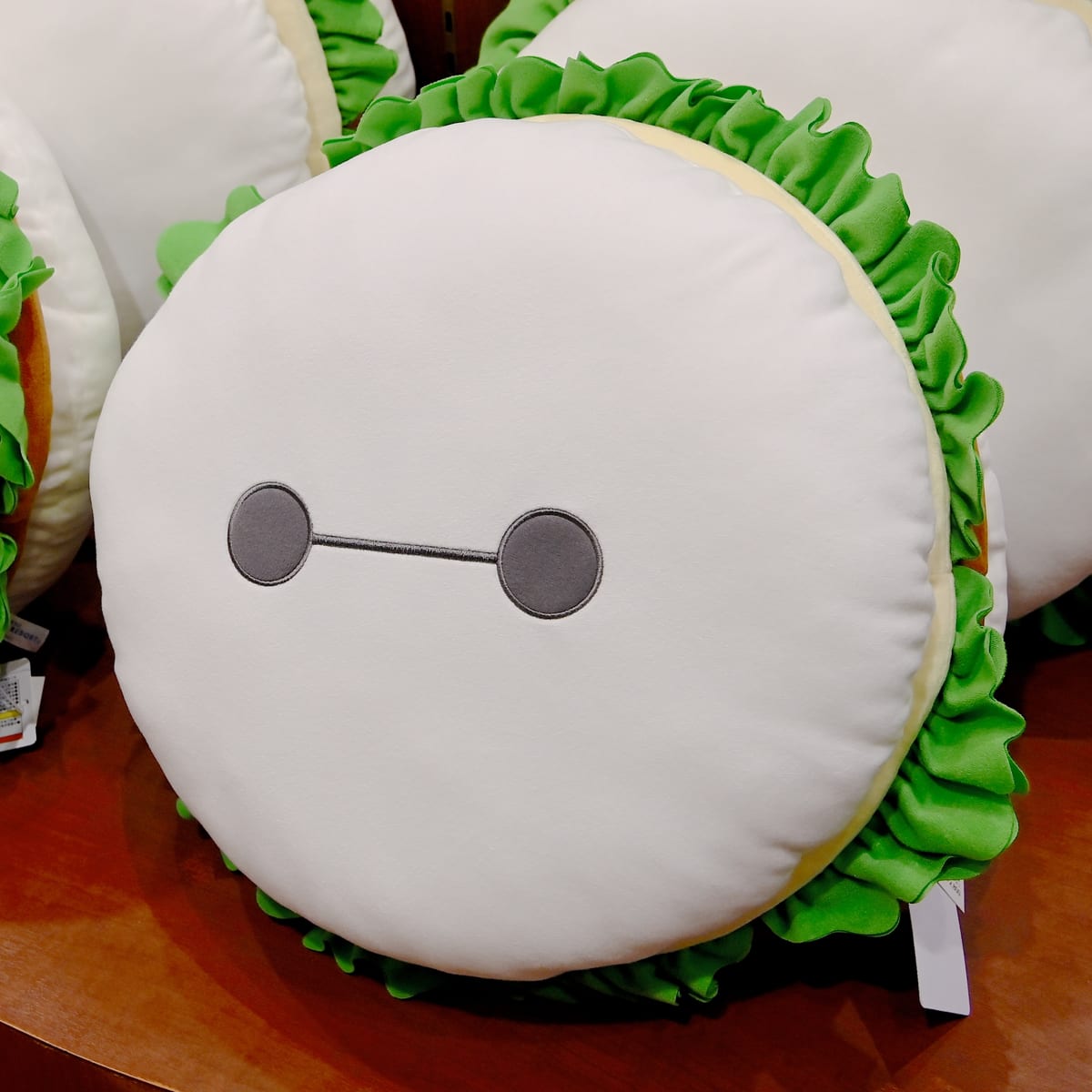 トゥモローランド・テラスで提供中のベイマックスのお顔型バーガーをデザインしたクッションが登場!
