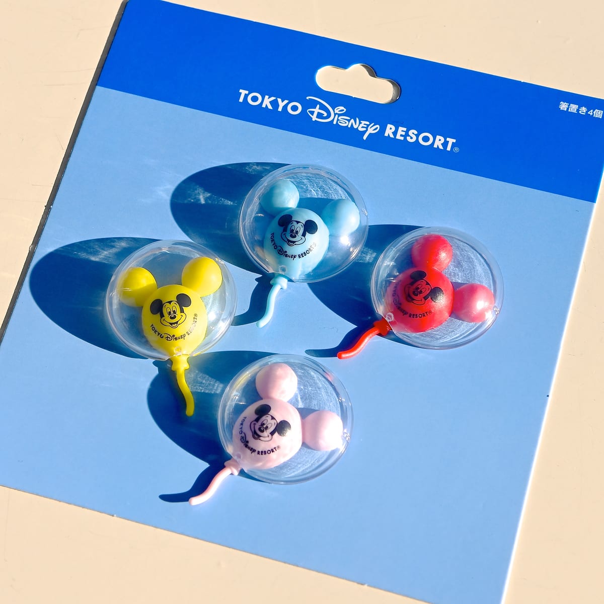 箸置きはミッキーバルーン同様、赤、青、ピンク、黄色の4色セット。