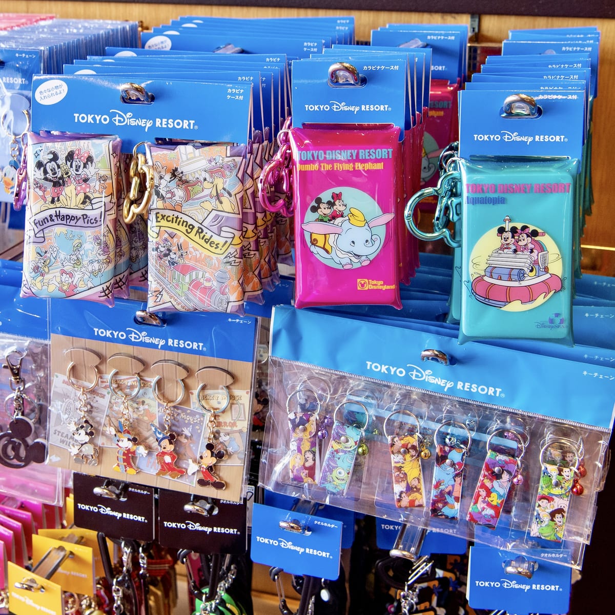 ミッキーマウスたちが東京ディズニーランド、東京ディズニーシーで元気いっぱい楽しむ様子がデザインされたシリーズグッズにカラビナ(ケース付き)セットが登場☆