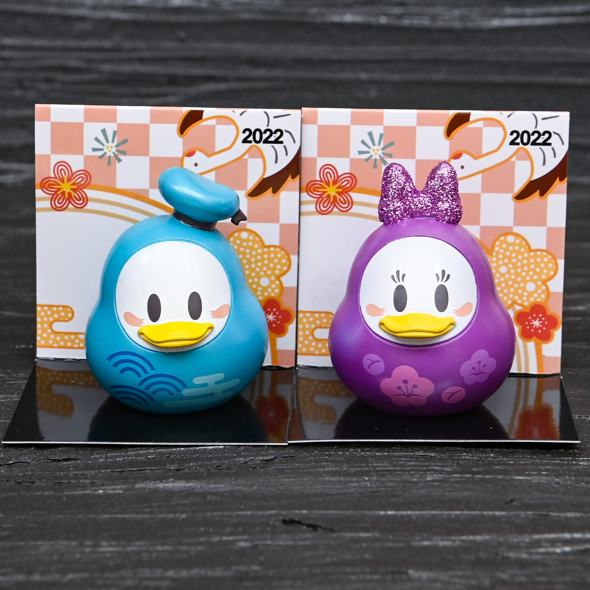 ドナルドと一緒に飾りたいデイジーをモチーフにしただるまデザインマスコット。