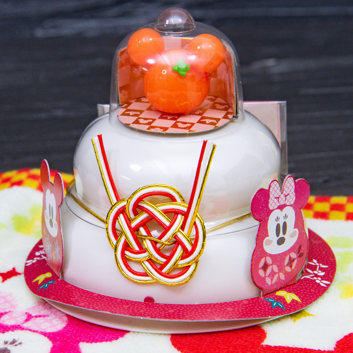 かわいいミッキー、ミニーモチーフのだるま、ミッキーシェイプの橙がポイントの鏡餅☆