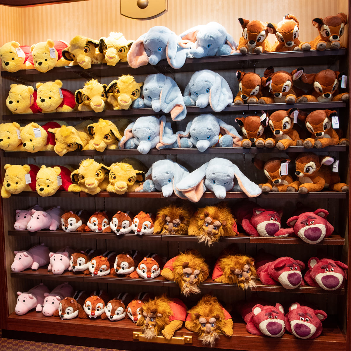 チップ&デール、とんすけ&ミスバニー、くまのプーさん、スティッチ、野獣、シンバ、チャンドゥ、バターカップ、ロッツォ、ハム、ダンボなどたくさんのディズニーキャラクターのだきまくらが登場中!