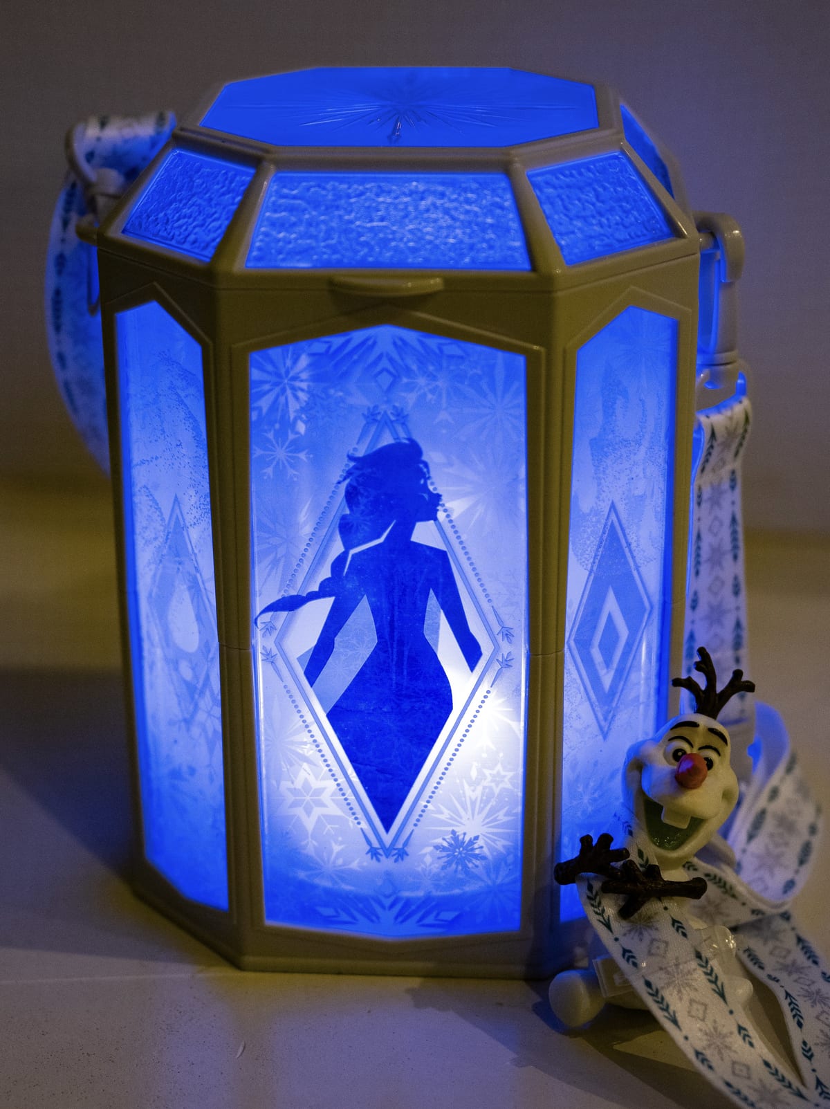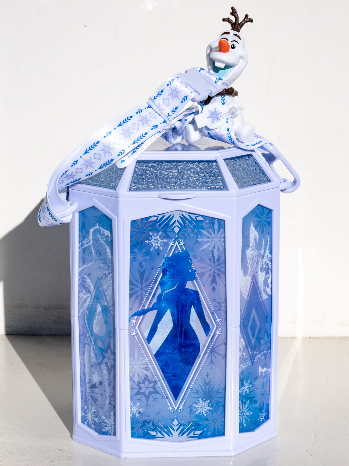 アナ雪らしく青と白に光る美しいポップコーンバケットです☆
