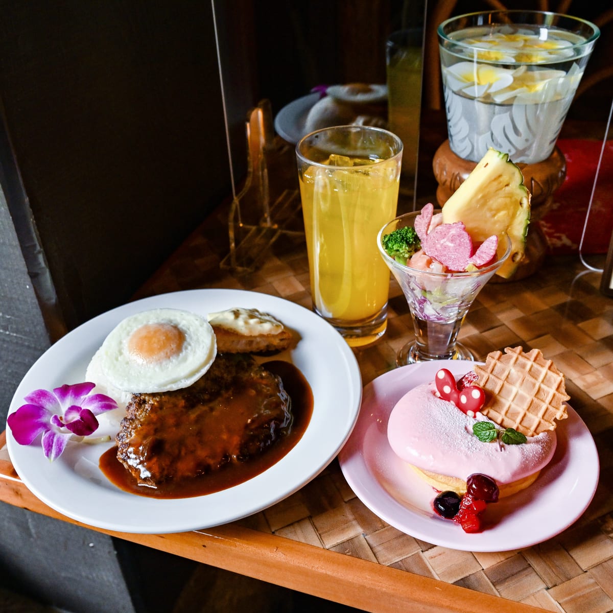 ハワイアン風のパンケーキなど楽しめるレストラン「ポリネシアンテラス・レストラン」では、"トータリー・ミニーマウス"スペシャルパンケーキセットを提供。
