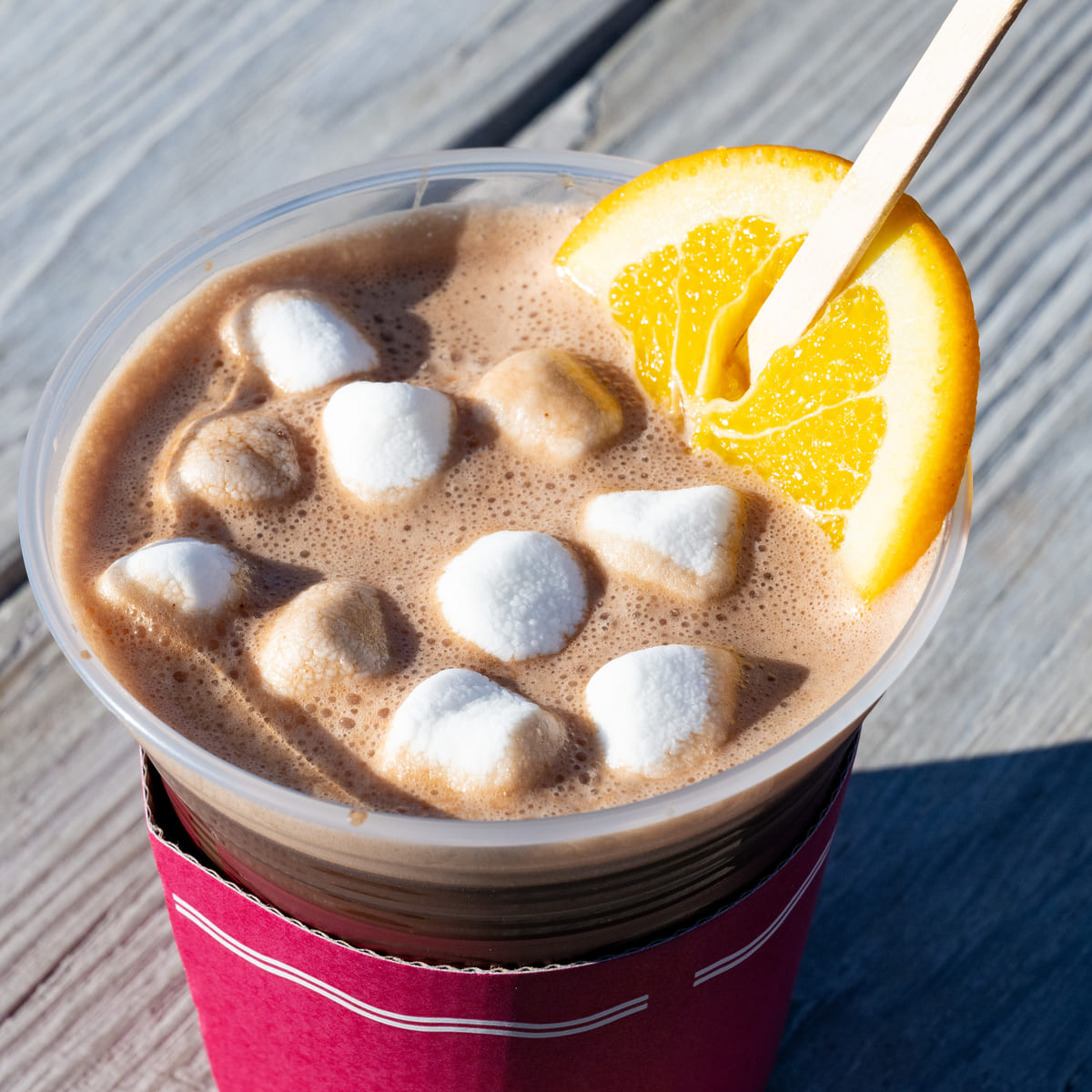 オレンジとたっぷりのマシュマロを浮かべた大人が楽しめる特別なホットココアです☆