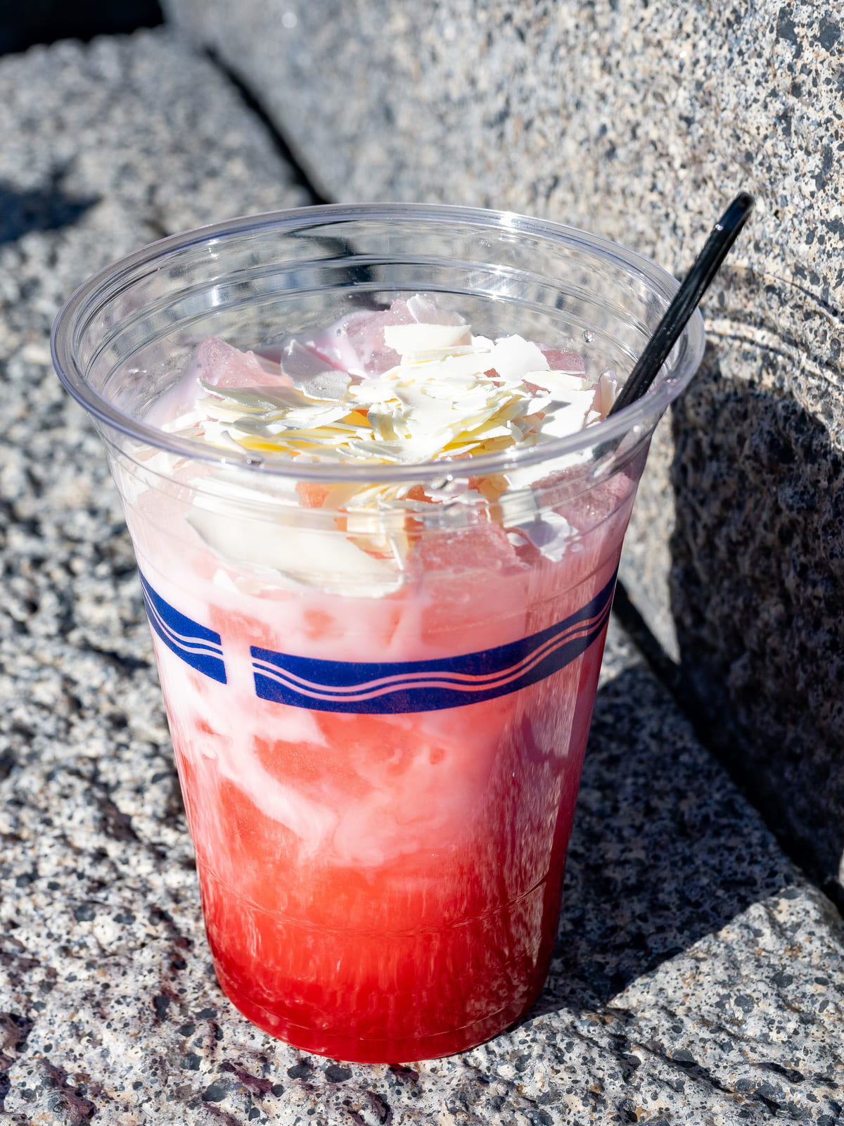 営業が再開された東京ディズニーシー/メディテレーニアンハーバーにある「リフレスコス」では、ヨーグルトカクテル(ウォッカ&ストロベリー)を提供。