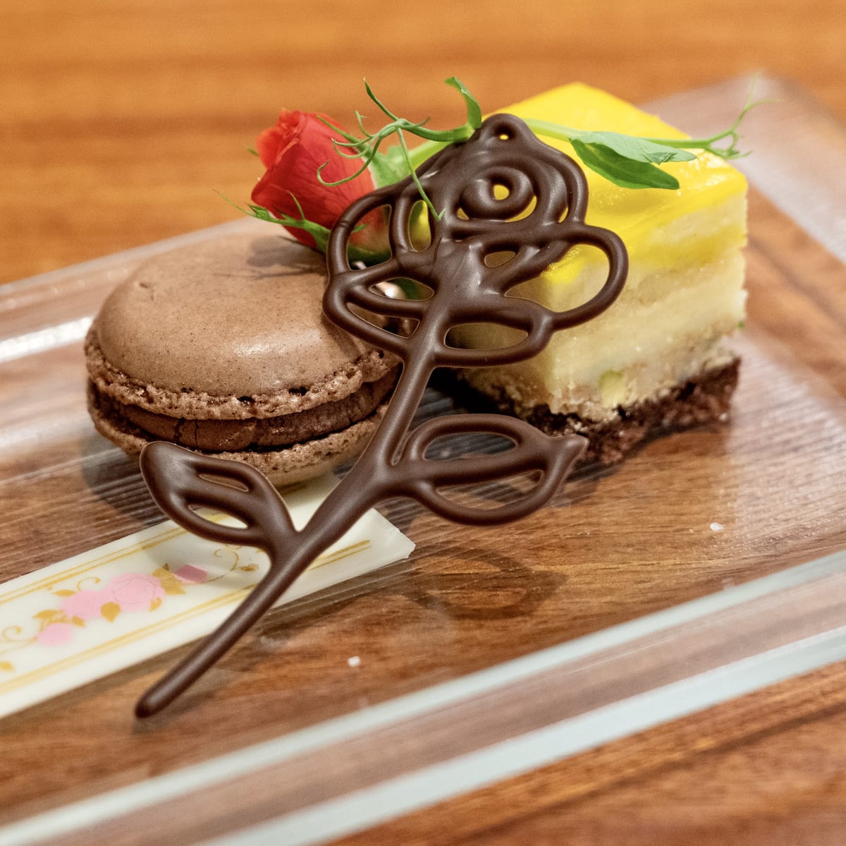 - スペシャルデザートプレート(ストロベリー&ピスタチオ、ショコラプラリネ、ミラベルプラム&ホワイトチョコレート)