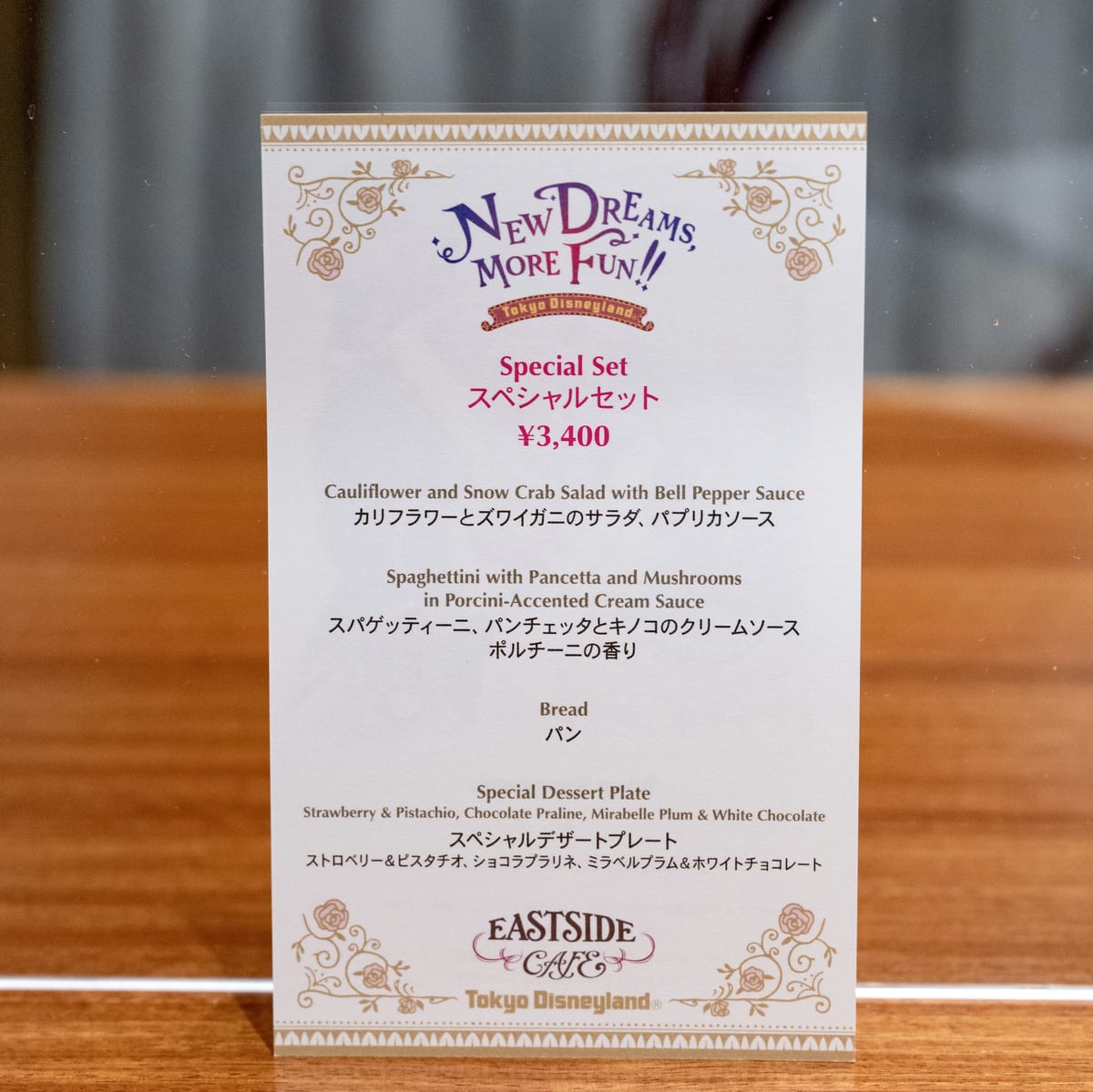 スペシャルデザートは、「サダハルアオキ」で人気のデザートプレート“デギュスタシオン”の東京ディズニーランド限定ケーキも加わったメニュー。