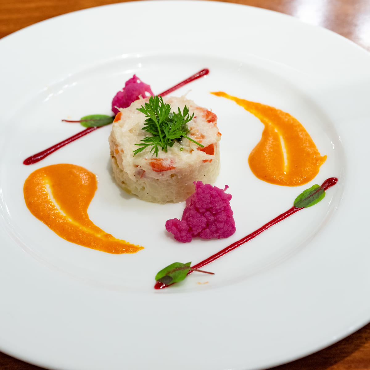 - カリフラワーとズワイガニのサラダ、パプリカソース