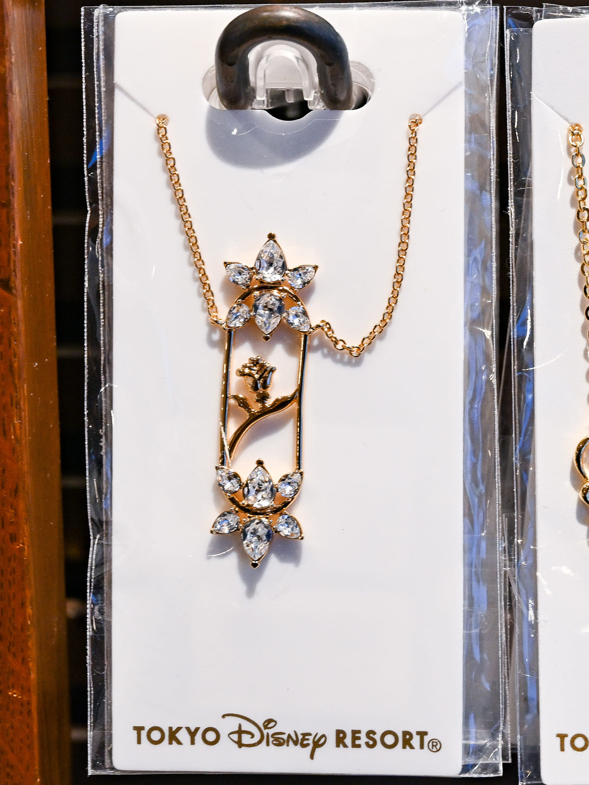 ディズニーアニメーション映画『美女と野獣』のキーアイテムであるバラが入ったガラスドームをモチーフにしたネックレス。