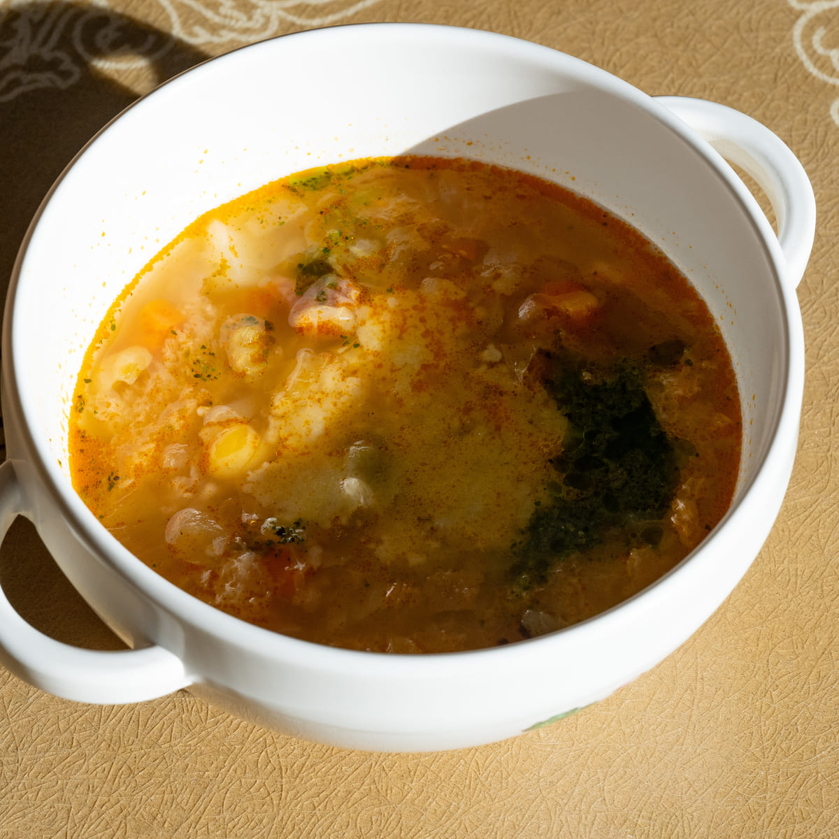スープは、野菜とパンを煮込んだ具だくさんのあたたかなスープです。