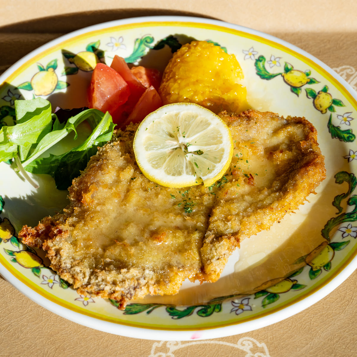 メインのカツレツは、伝統手法の格子模様をつけることでミラノ風のカツレツをイメージ☆