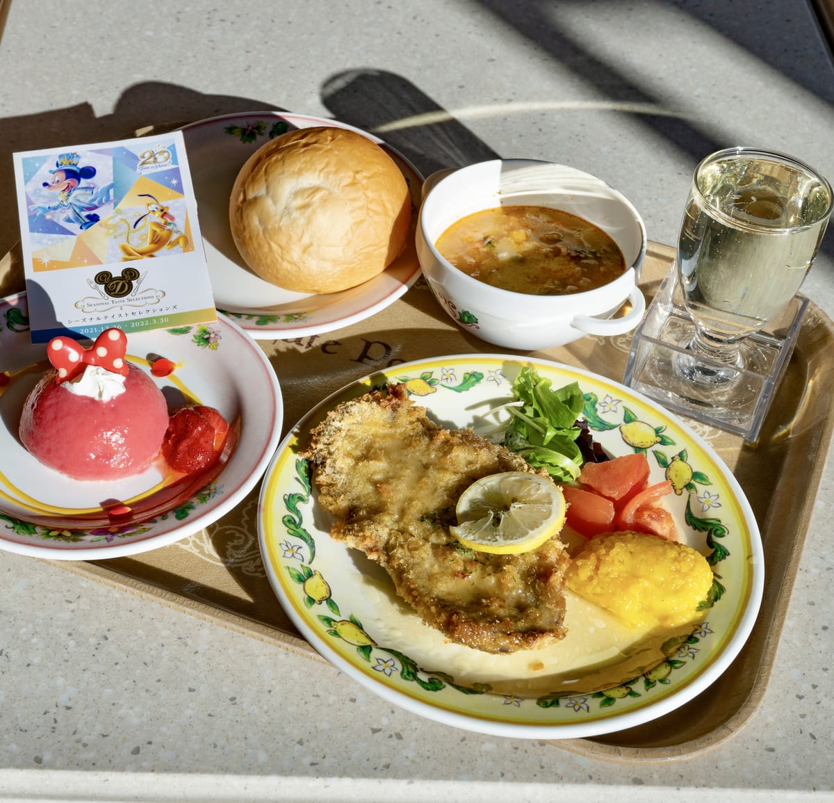 牛サーロインのカツレツ、レモンバターソース!カフェ・ポルトフィーノ2022春"東京ディズニーシー20周年スペシャルセット"の紹介でした。