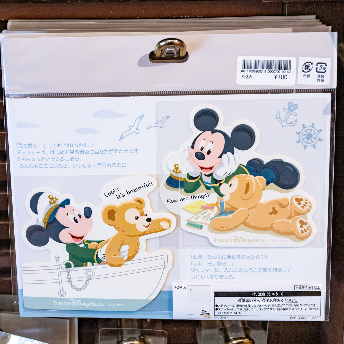 「ミッキーマウス」と「ダッフィー」のストーリーが楽しめるポストカード1枚とステッカー3枚のセット。