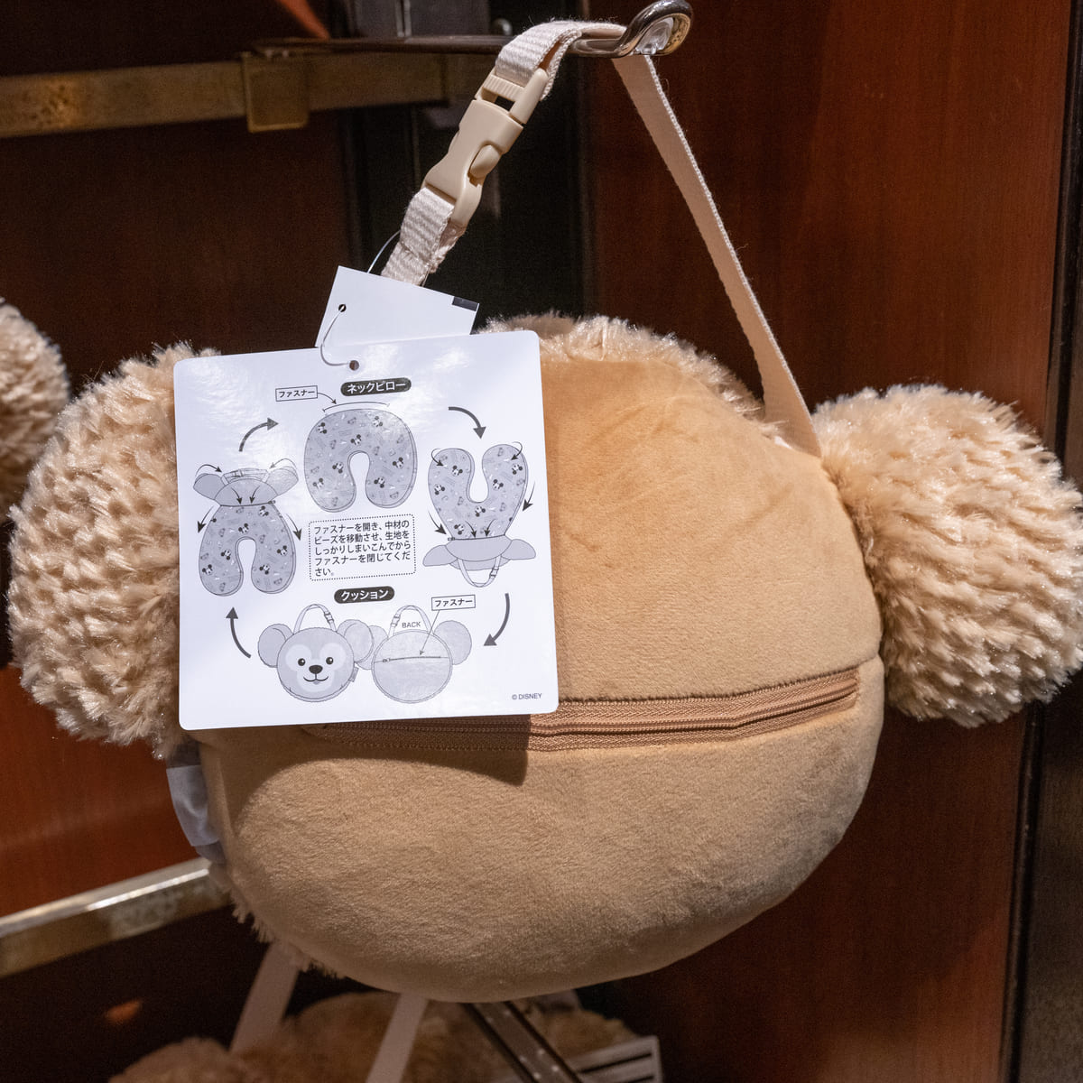 ふわふわなダッフィーのお顔型ネックピロー。