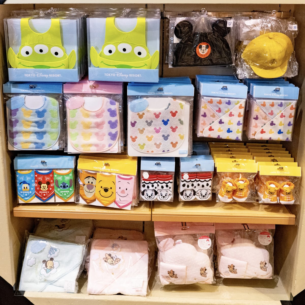 東京ディズニーランド、東京ディズニーシーではオリジナルのベビーグッズを種類豊富に販売中。
