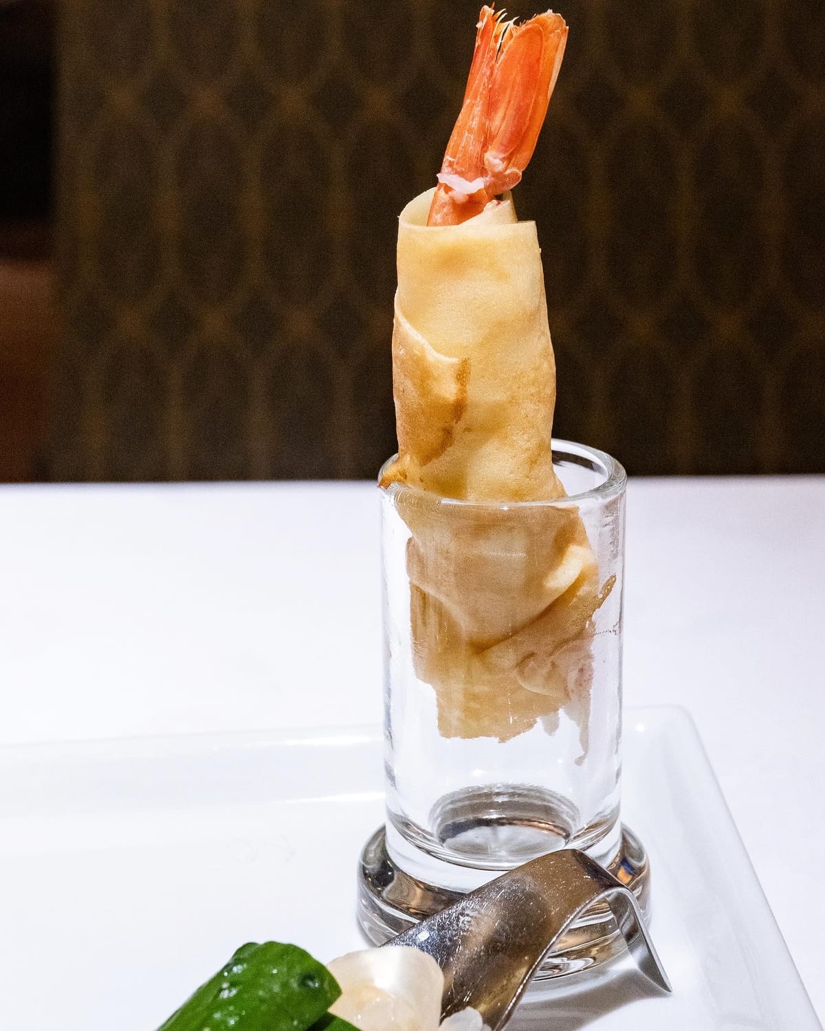 海老をクレープで包んだ洋風なメニューです。