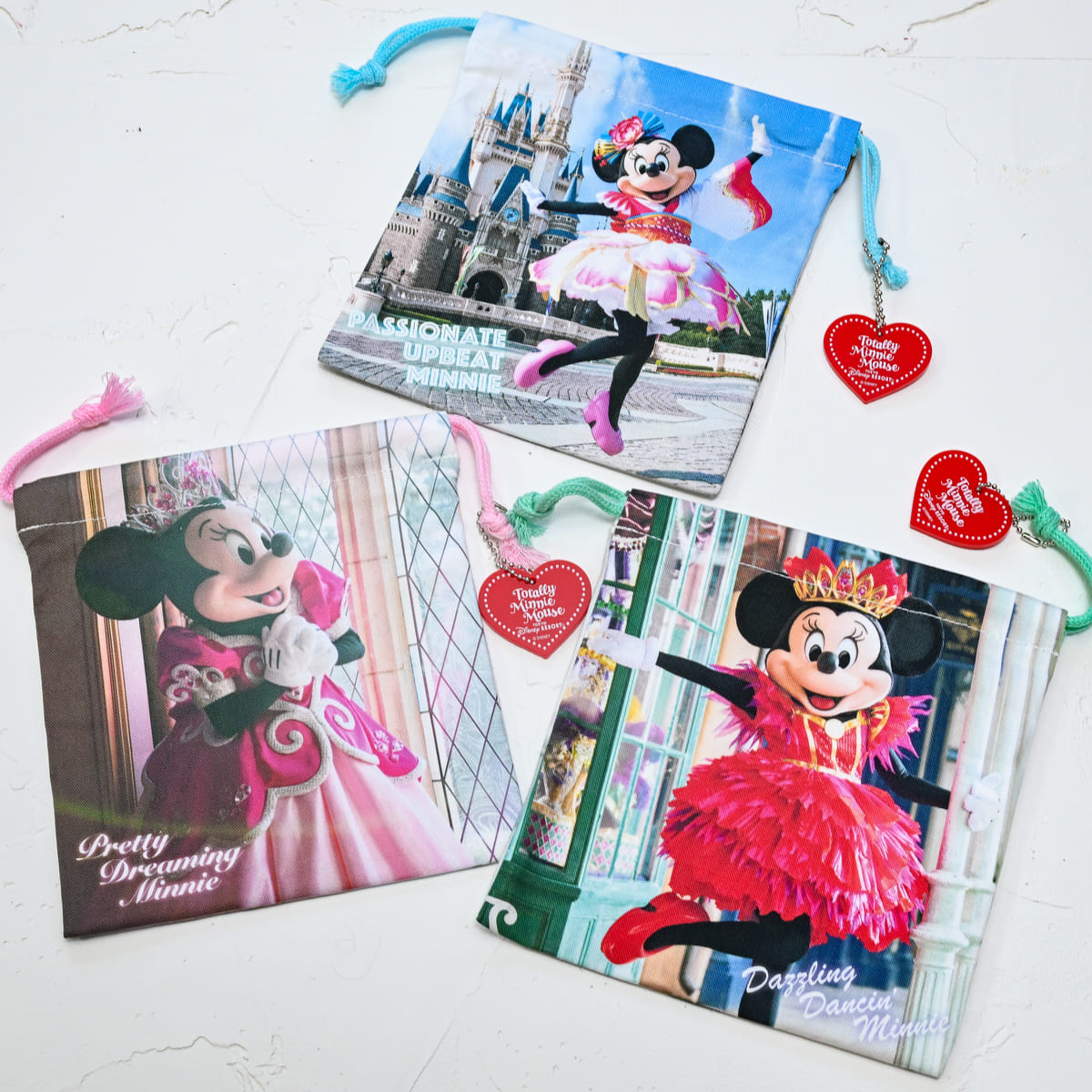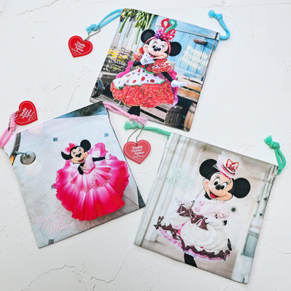 ポートレート風のミニーマウスがデザインされたきんちゃく3枚セット。