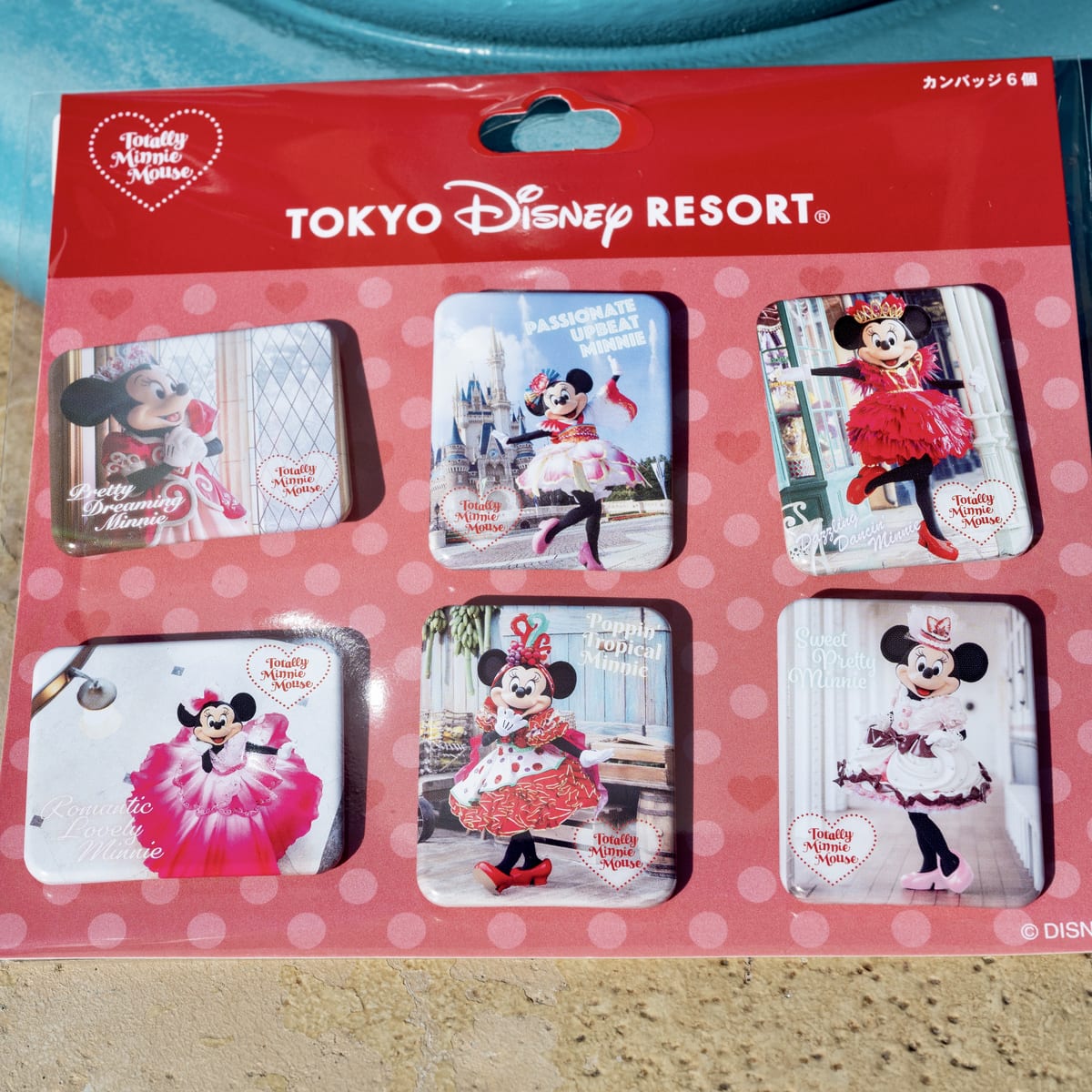 ポートレート風のミニーマウスの缶バッジ6個(ランド3個・シー3個)セット。
