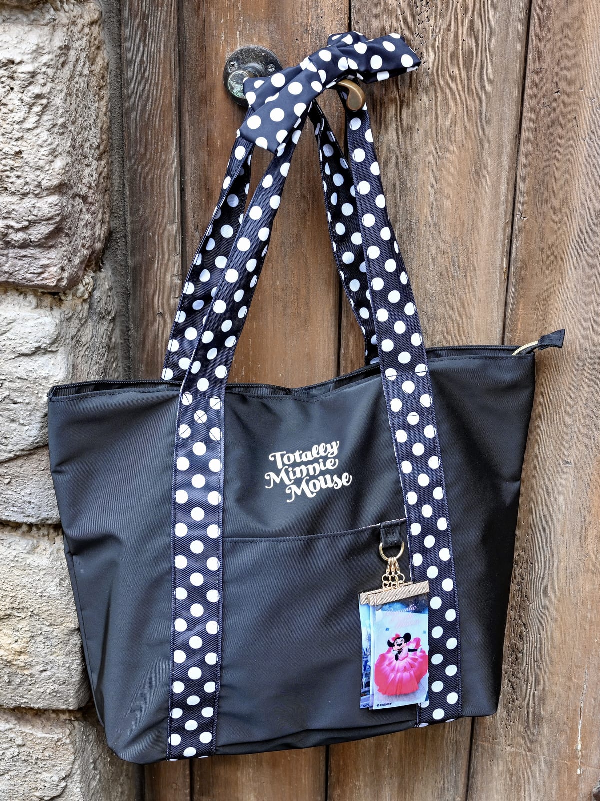 黒地に白ドットがおしゃれな"トータリー・ミニーマウス"トートバッグ。