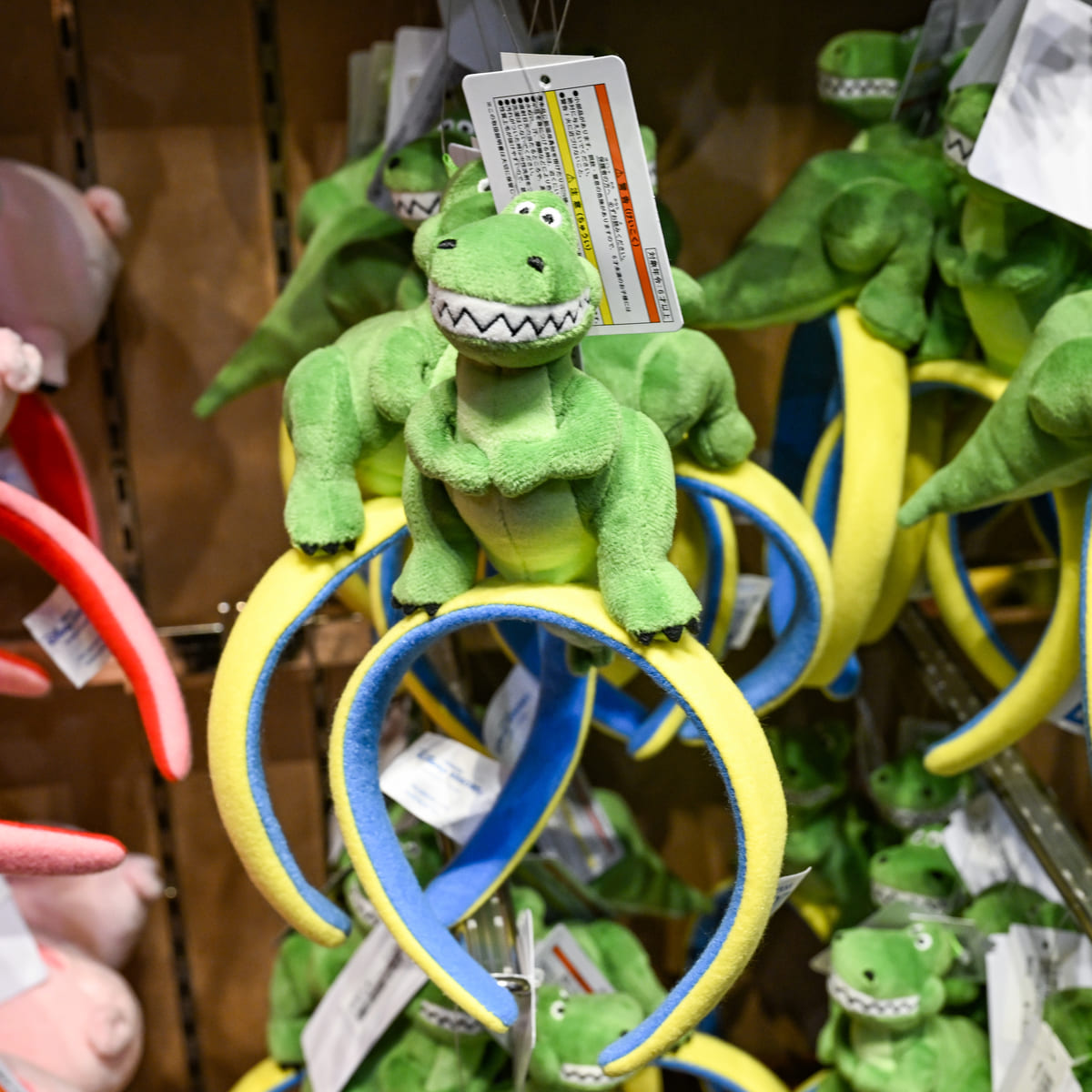 そんなキャラクターカチューシャにディズニー&ピクサー映画『トイ・ストーリー』の「レックス」のぬいぐるみがちょこんとのった新作が登場しました。