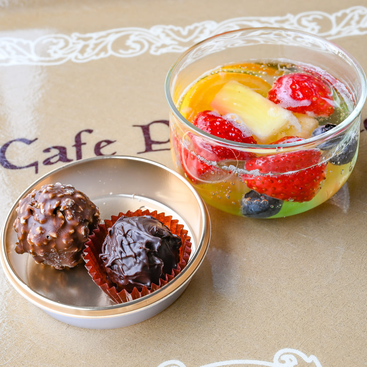 フレッシュなフルーツをさっぱりしたスープと一緒に楽しめます☆