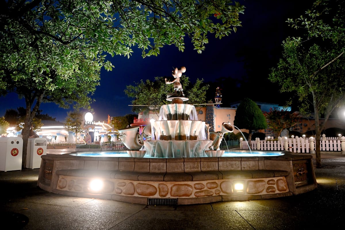 東京ディズニーランド/トゥーンタウンにある「ミッキーの家とミートミッキー」前にあるミッキーマウスと楽器の噴水。