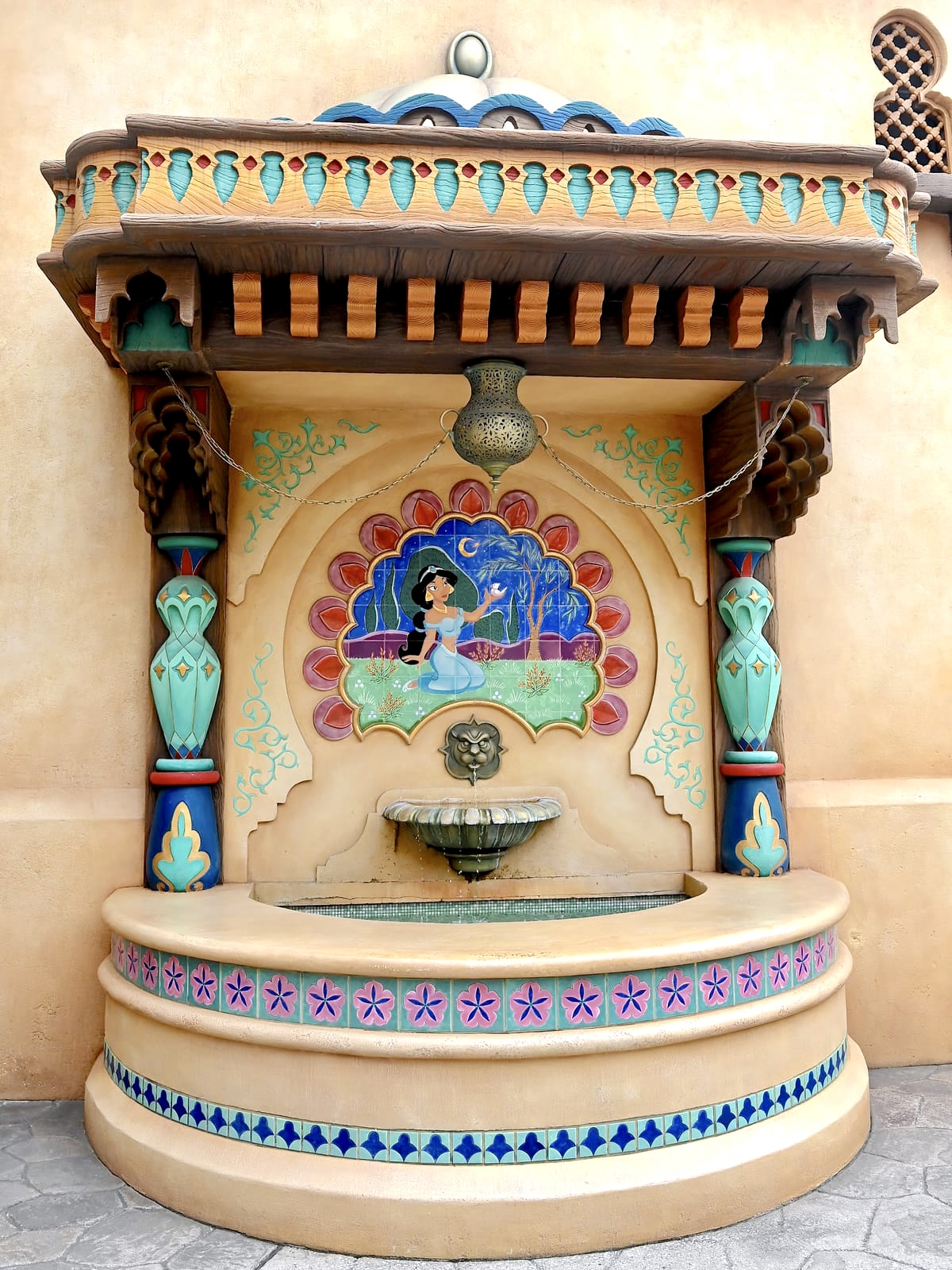 東京ディズニーシー/アラビアンコーストにあるレストラン「カスバ・フードコート」の市場側の入り口にあるフォトスポットとしても人気な「ジャスミン」の噴水。