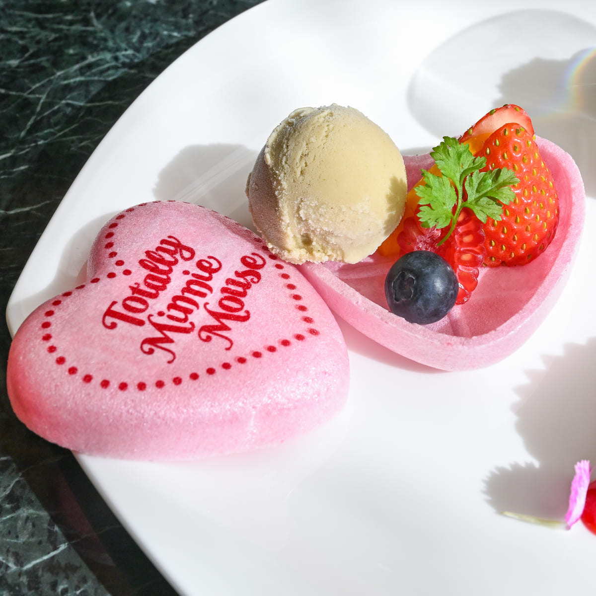 "トータリー・ミニーマウス"のロゴがデザインされたハート型にはピスタチオアイス☆