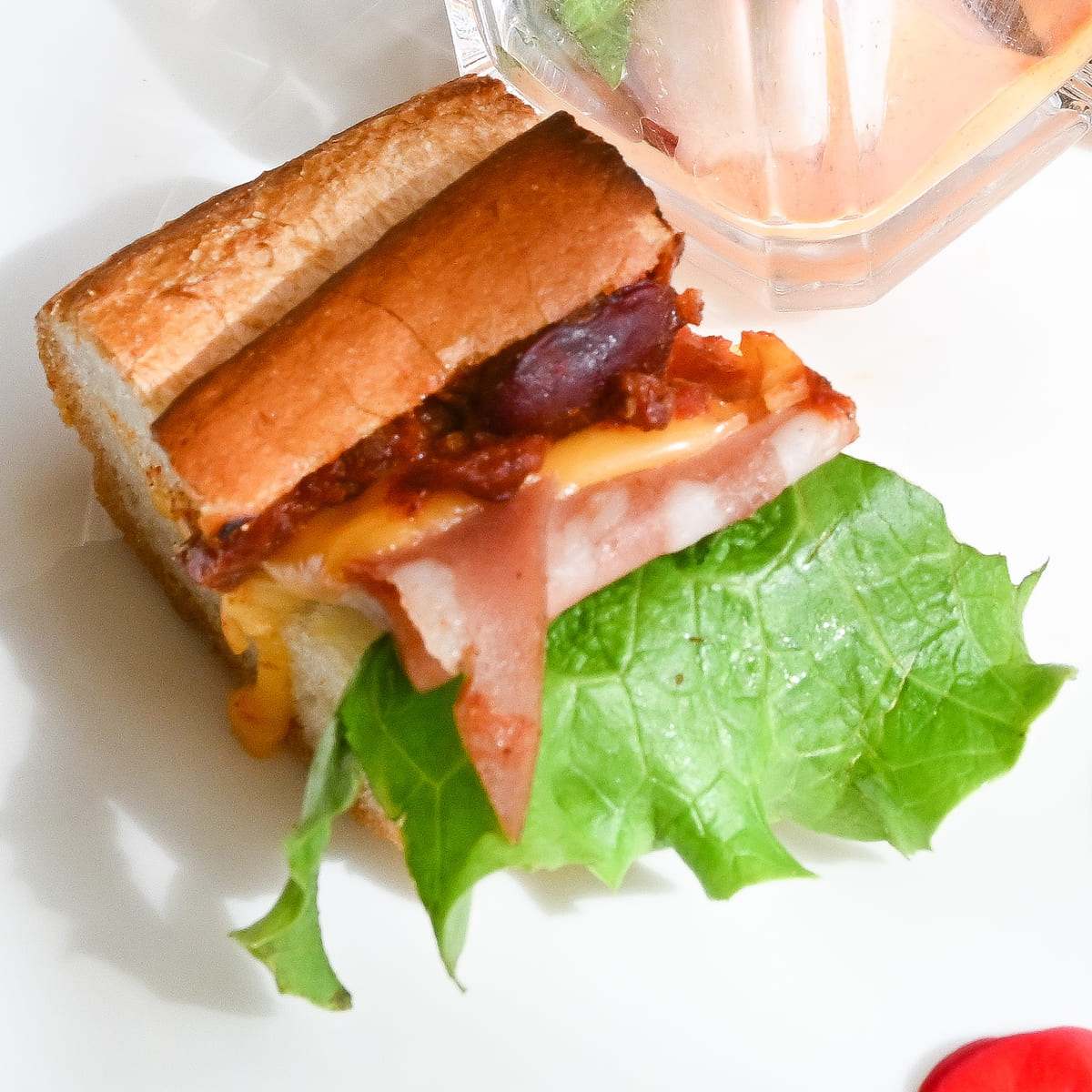 スパイシーなチリコンカンのサンドウィッチ。