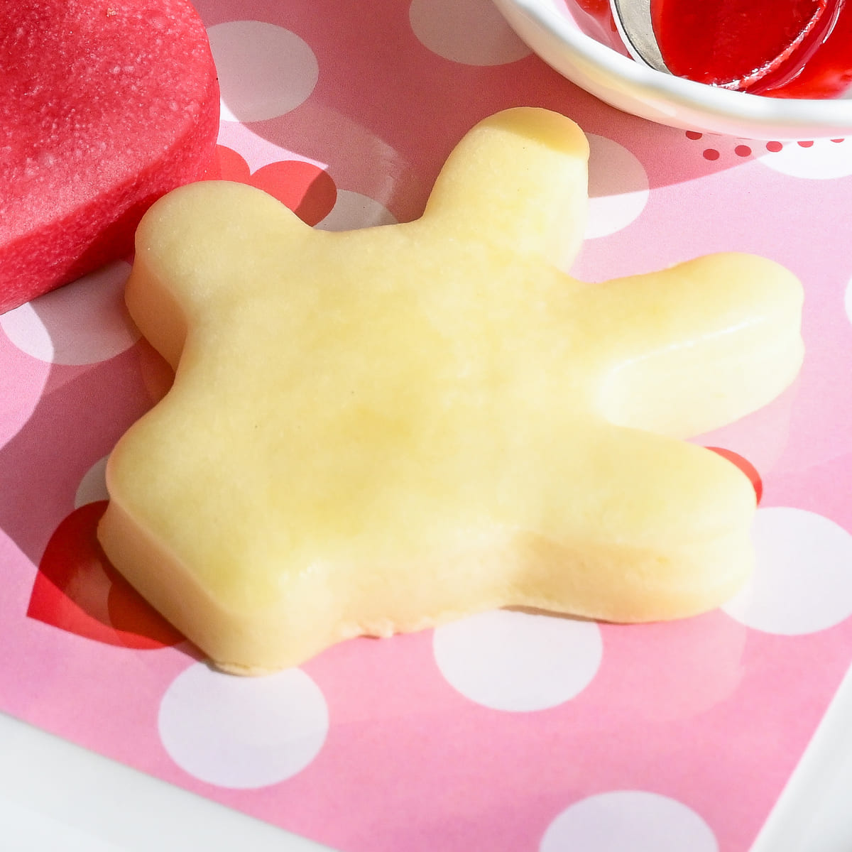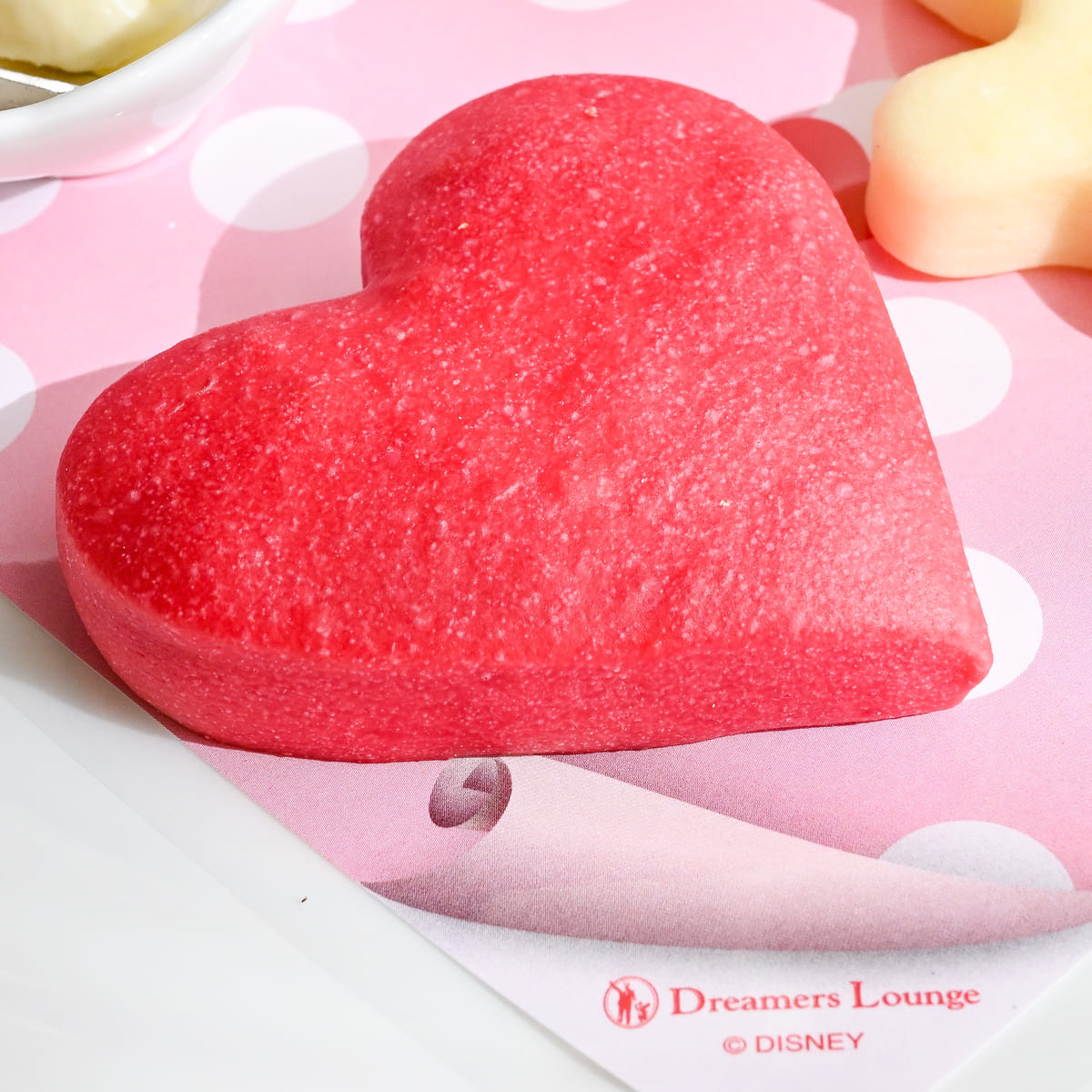 "トータリー・ミニーマウス"らしいハート型はビーツで色づけられたほんのり甘いブレッドです。