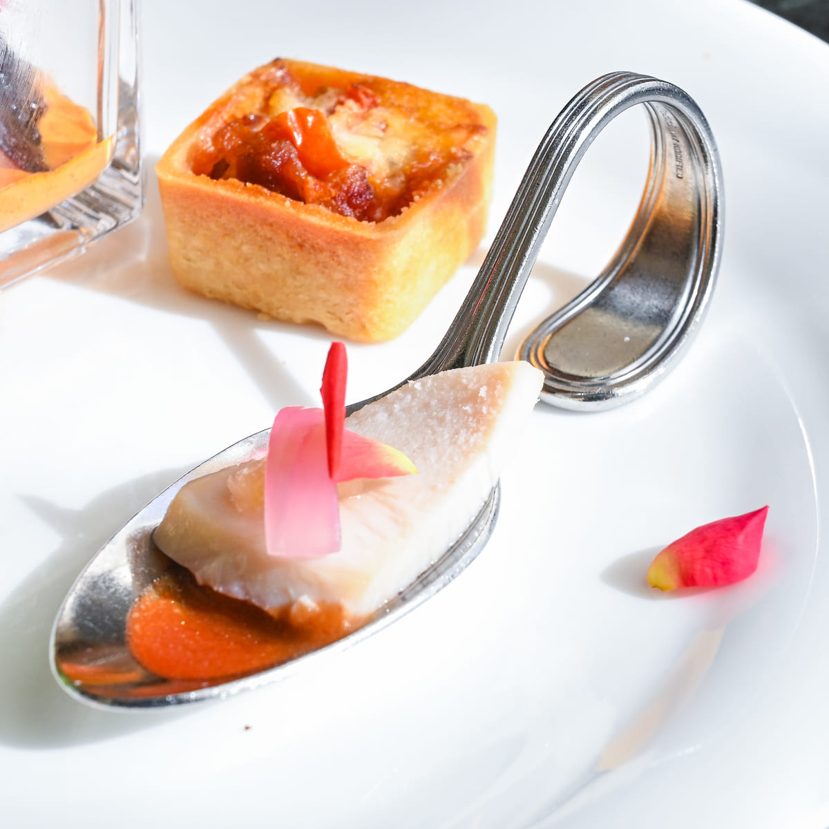 チキンのコンフィには花びらのトッピングも。