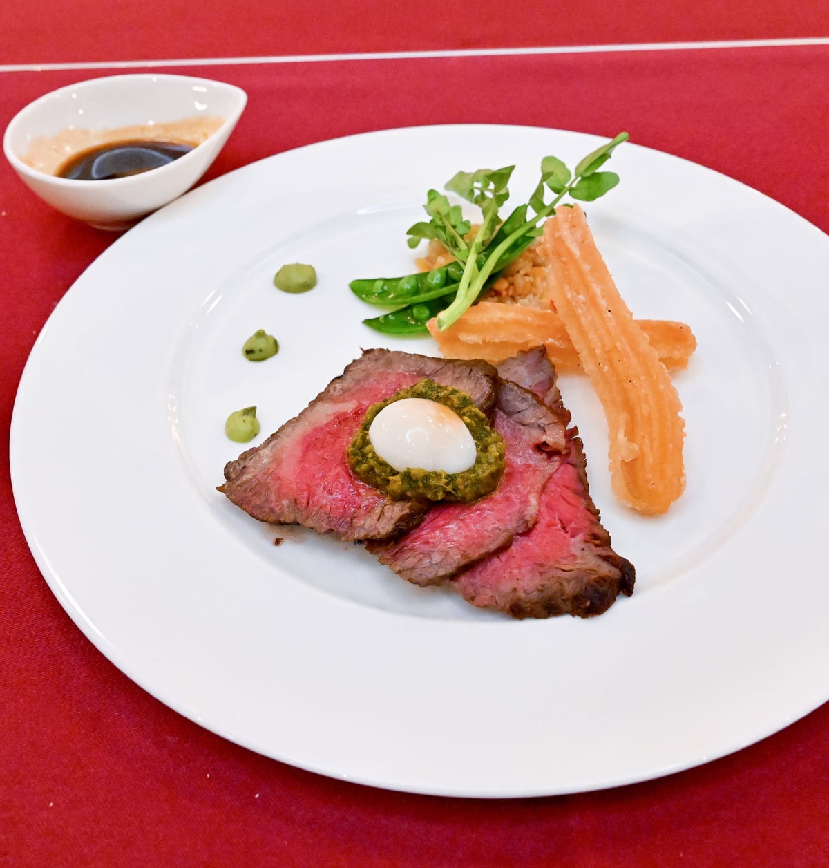 メインは、牛ステーキに目玉焼きを乗せるポルトガル料理“ビトーク”をアレンジ。