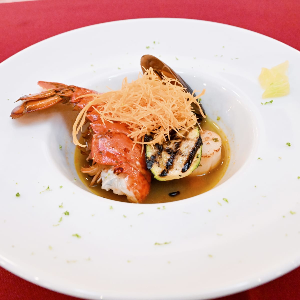 オマール海老とホタテ貝、ムール貝といった魚介の旨味がたっぷり味わえます。