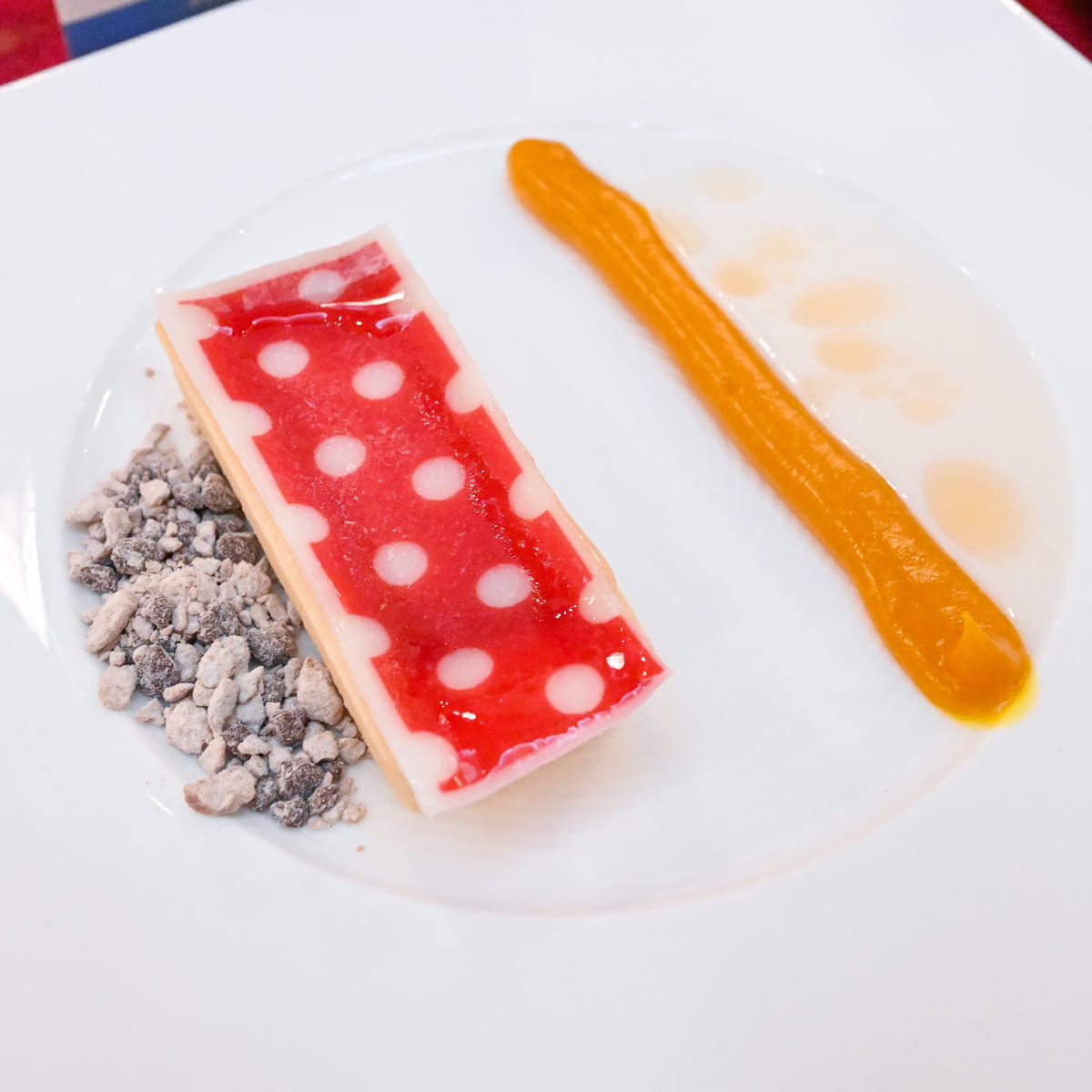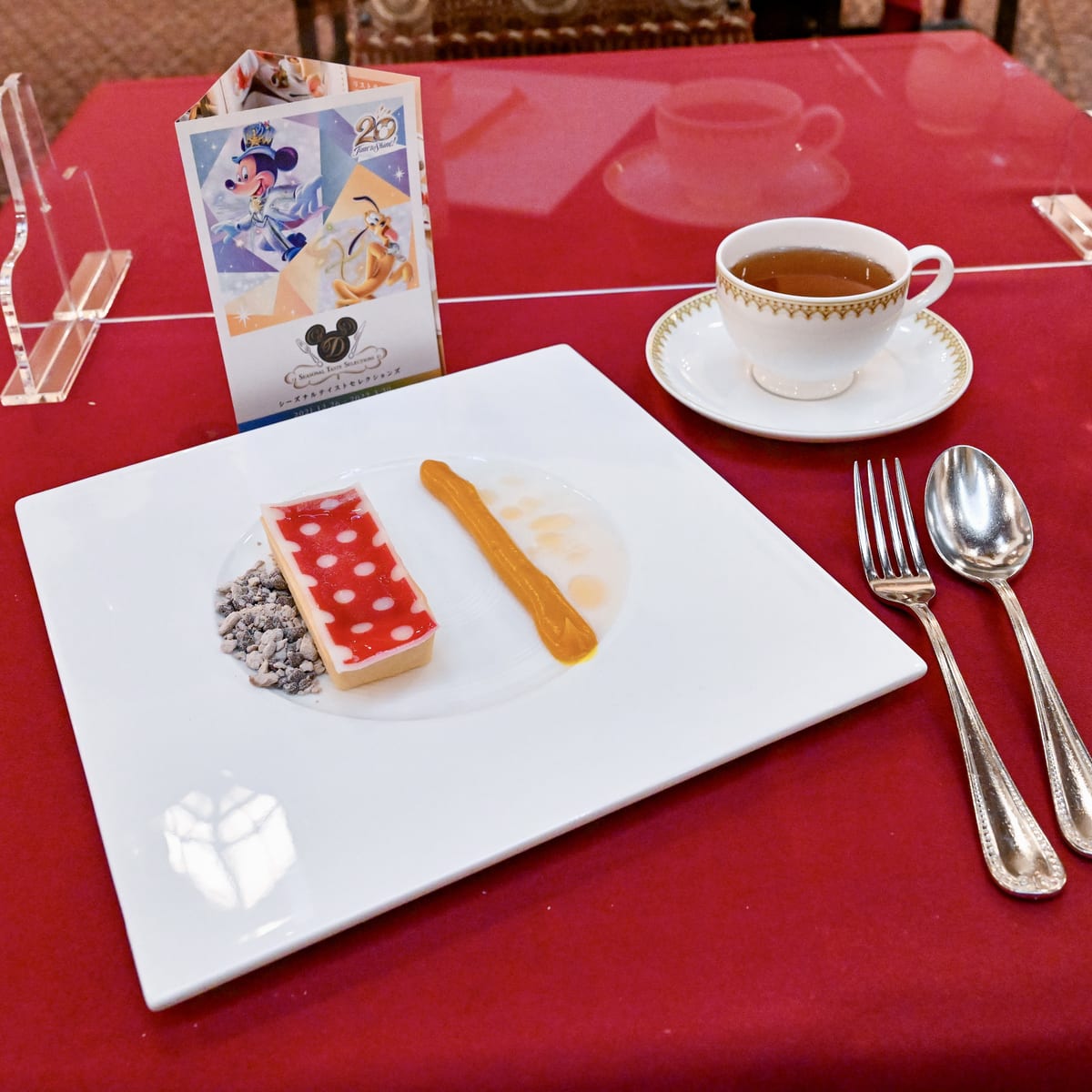ミニーの魅力がつまったスペシャルイベント"トータリー・ミニーマウス"期間中(12月26日〜3月30日)らしくタルトの上にはドット柄のもちもちした求肥がトッピングされています☆
