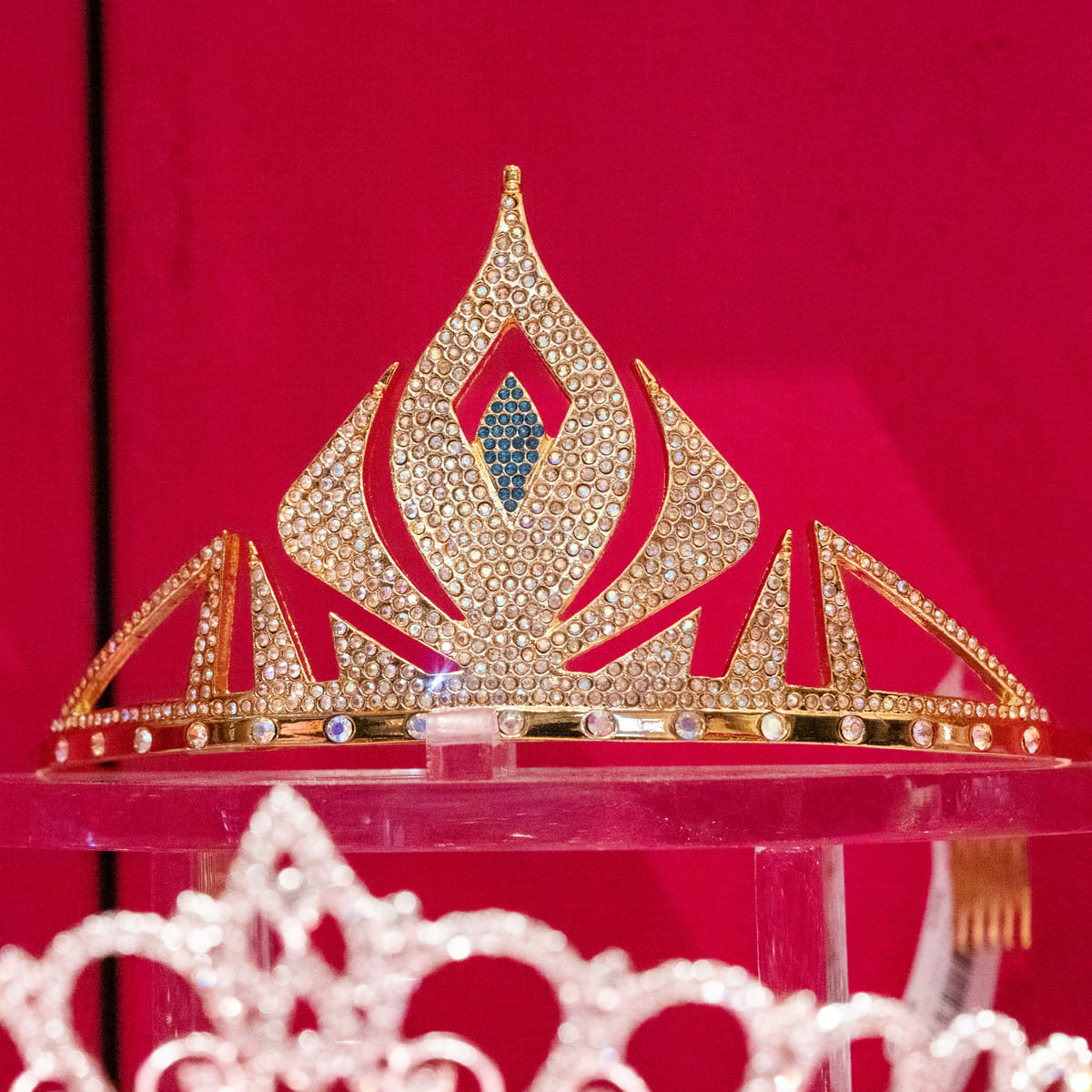 ゴールドにブルーのストーンがデザインされたティアラ。
