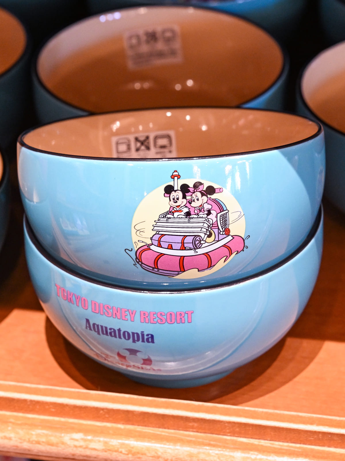 東京ディズニーシー/ポートディスカバリーにあるアトラクション「アクアトピア」に乗る「ミッキーマウス」と「ミニーマウス」デザインのボウル。