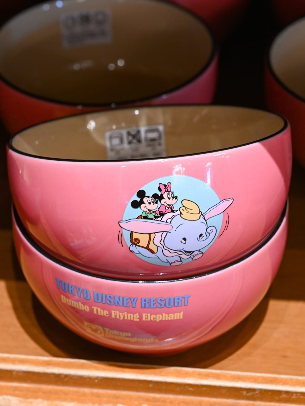 東京ディズニーランド/ファンタジーランドにあるアトラクション「空飛ぶダンボ」に乗る「ミッキーマウス」と「ミニーマウス」デザインの重量感のあるボウル。