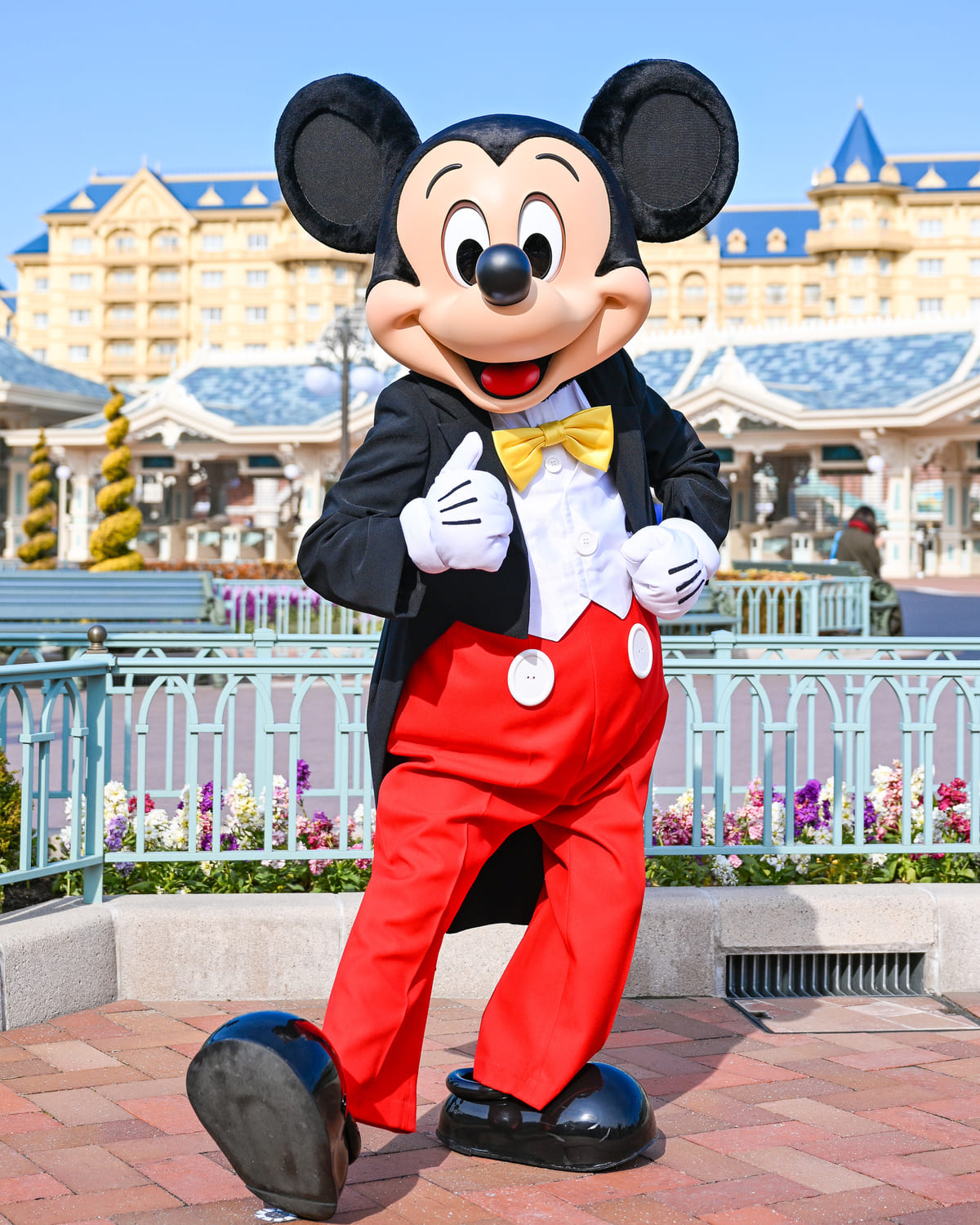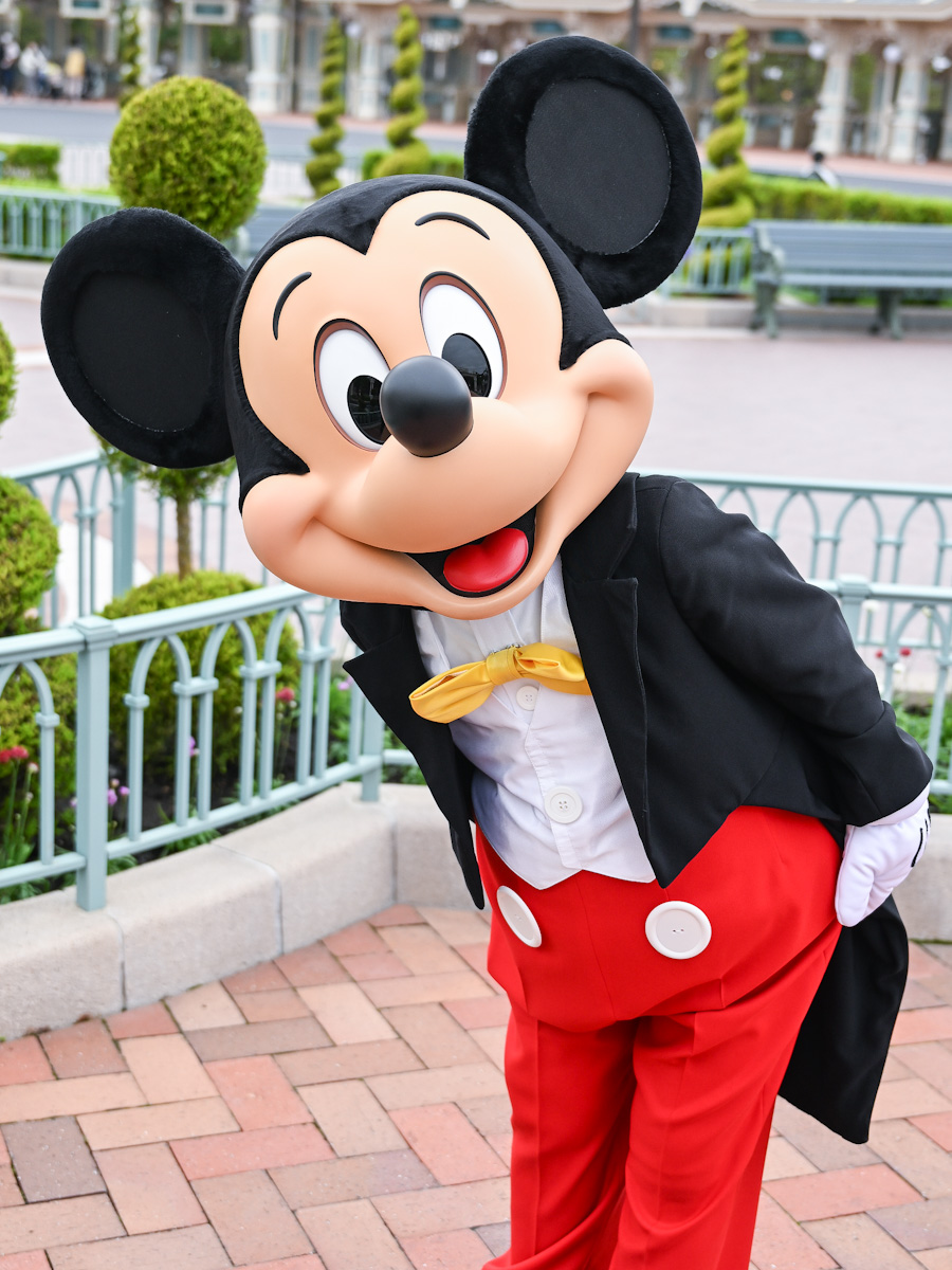 燕尾服姿の「ミッキーマウス」と会うことができます。