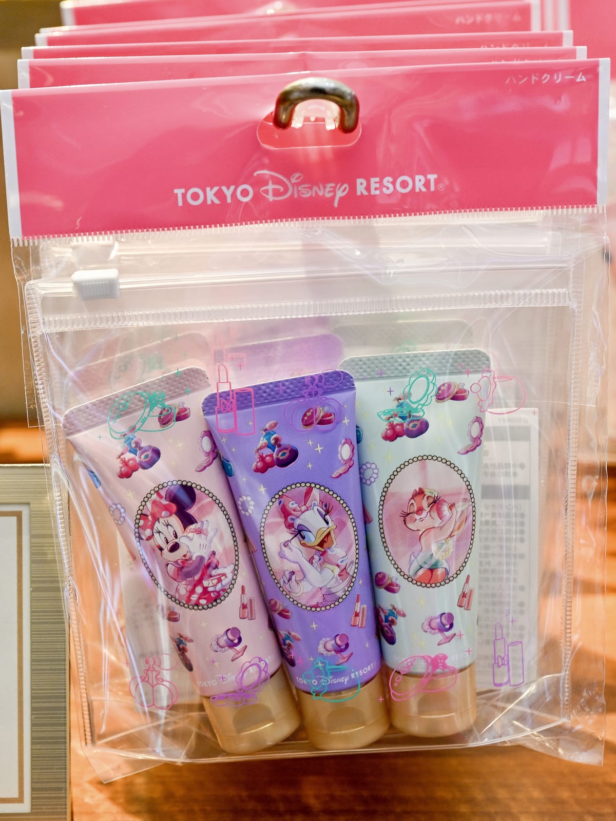ミニーマウス、デイジーダック、クラリスがデザインされたハンドクリーム3本セット。