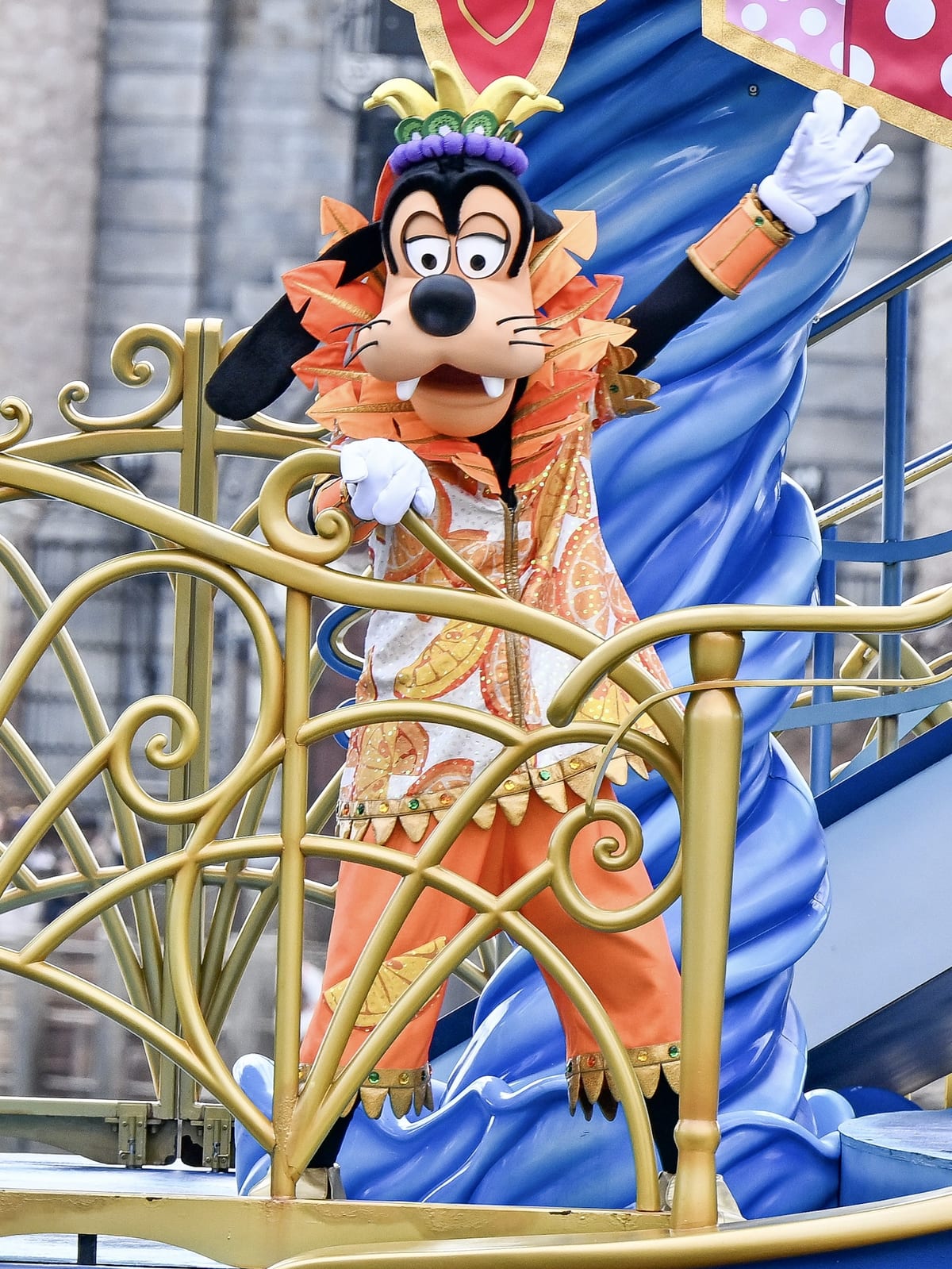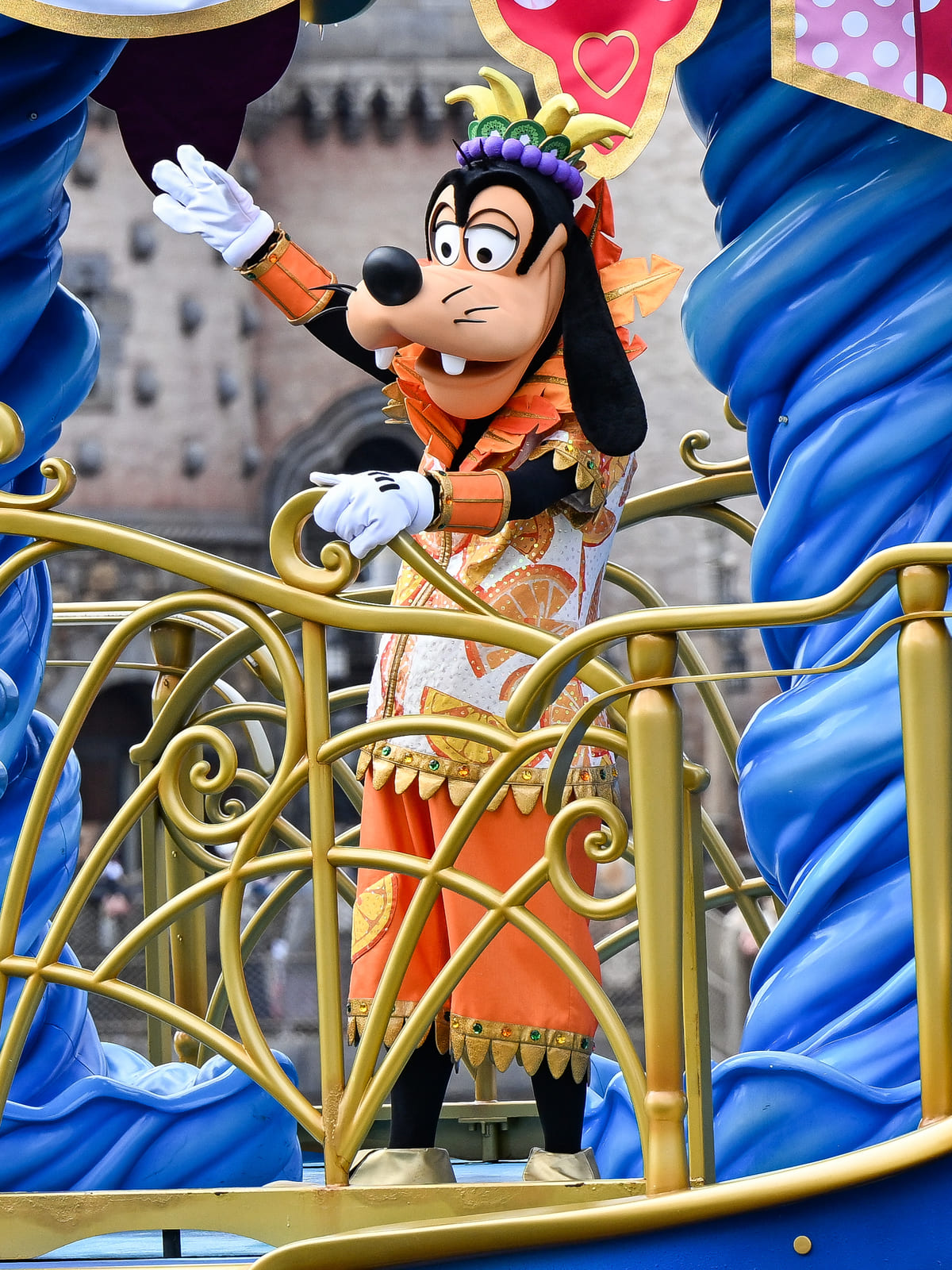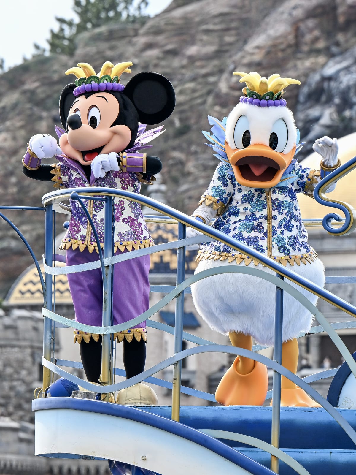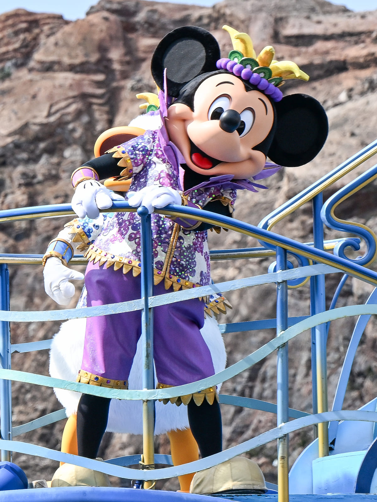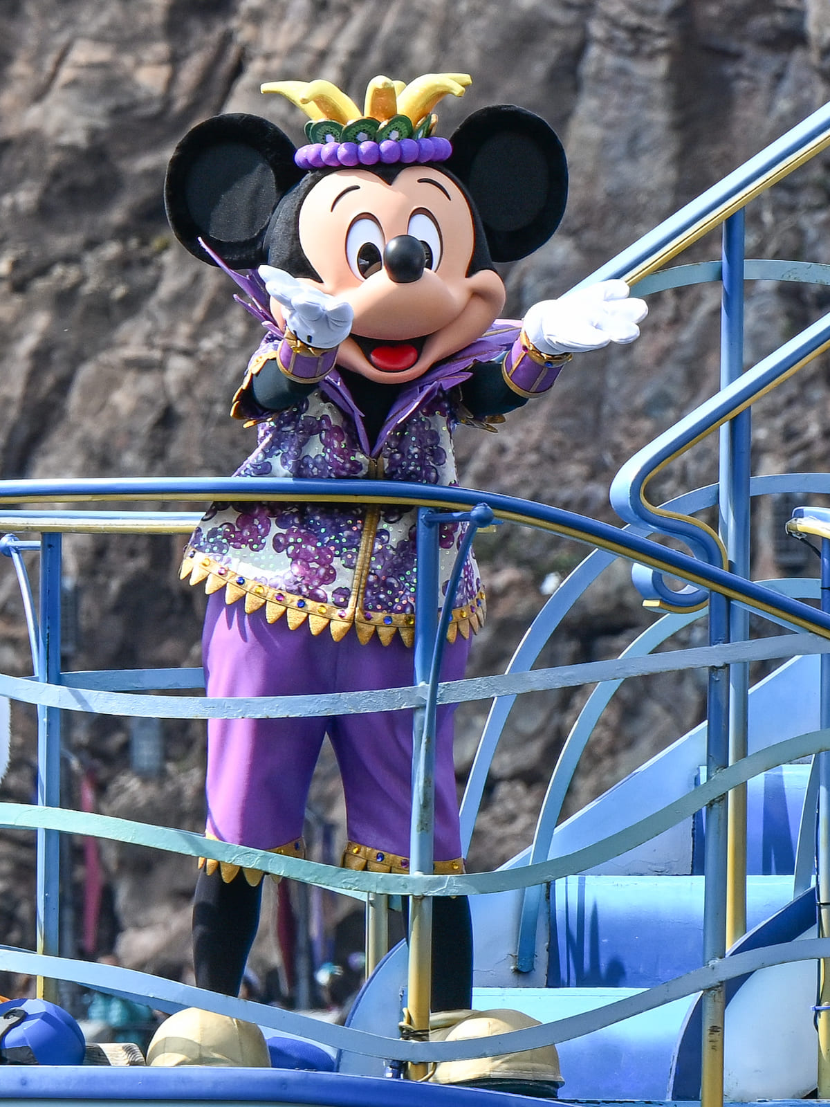 ミッキーマウスは、紫色のぶどうをモチーフにしたコスチューム。