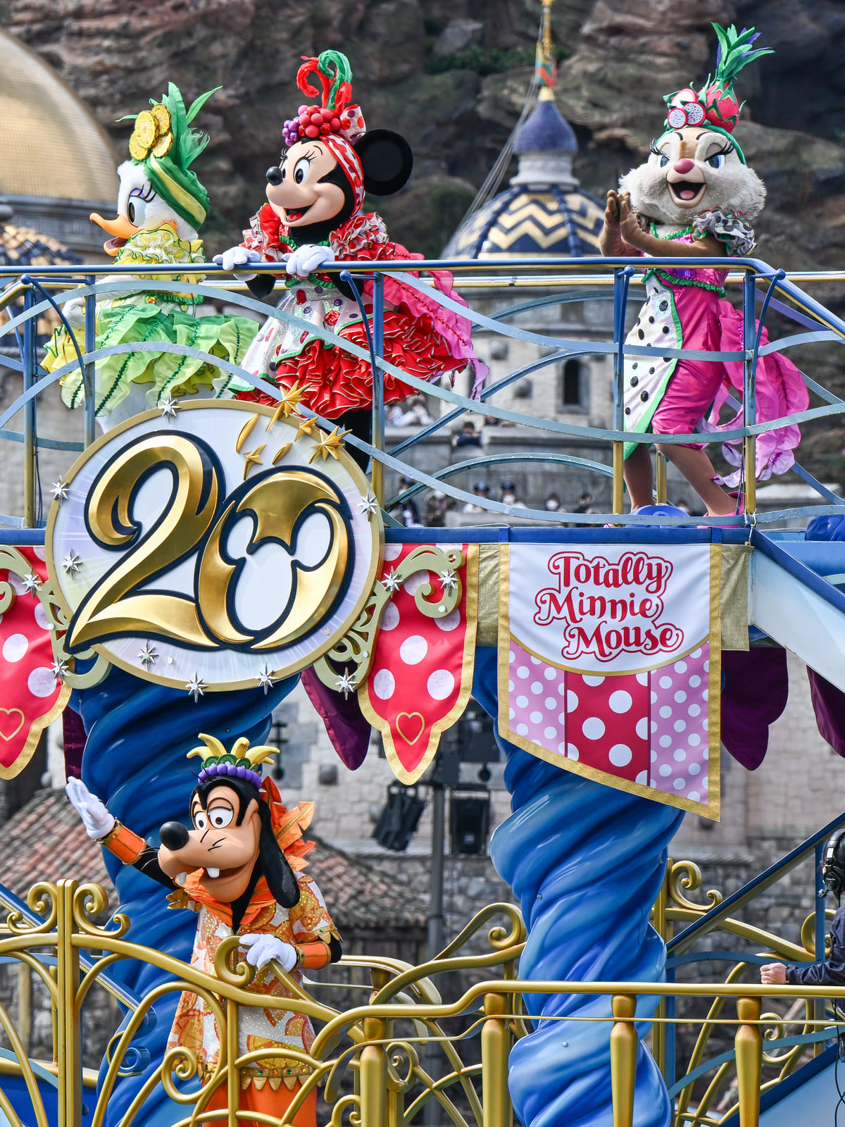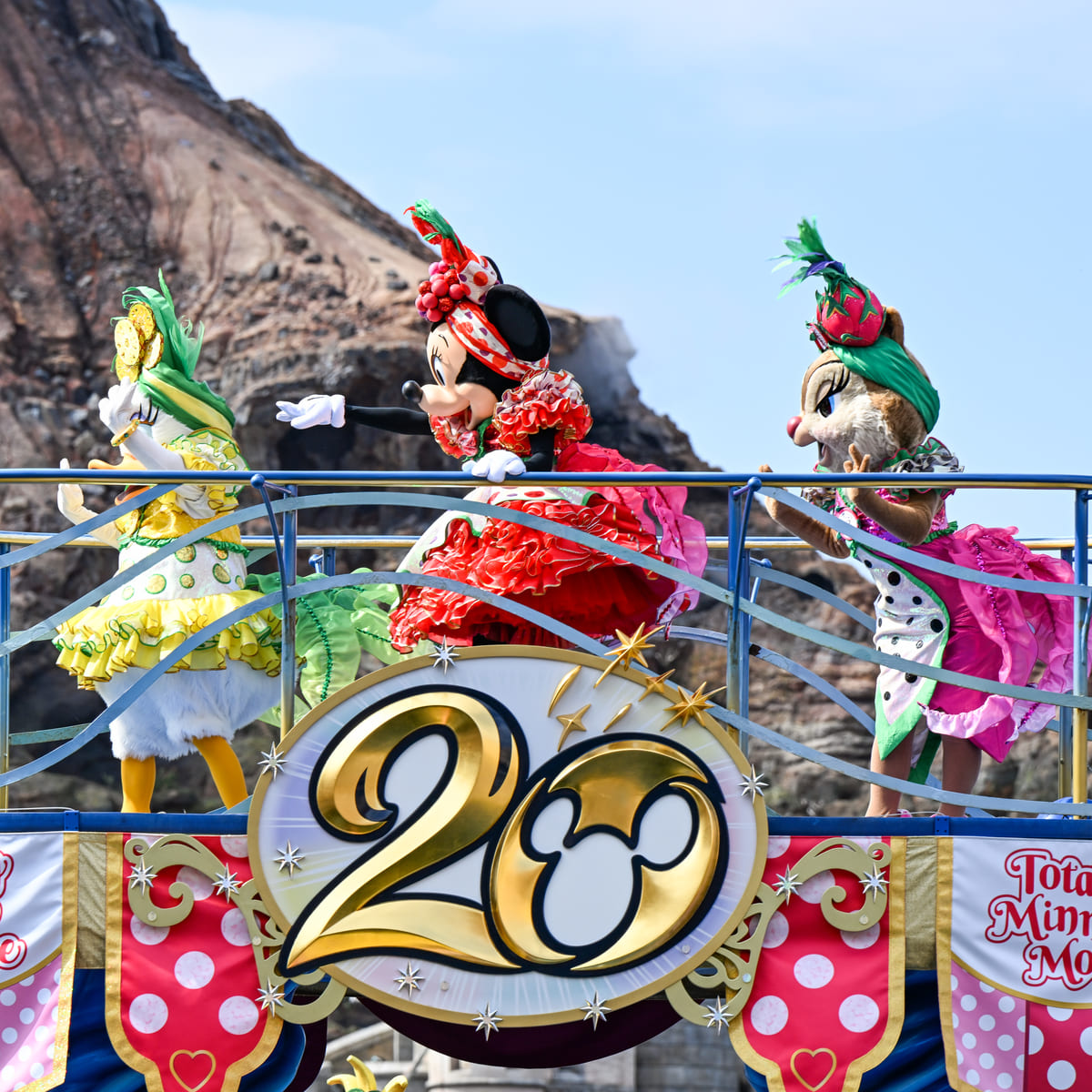 ミニーマウスたちが「ミニーのトロピカルスプラッシュ」のコスチュームで登場!