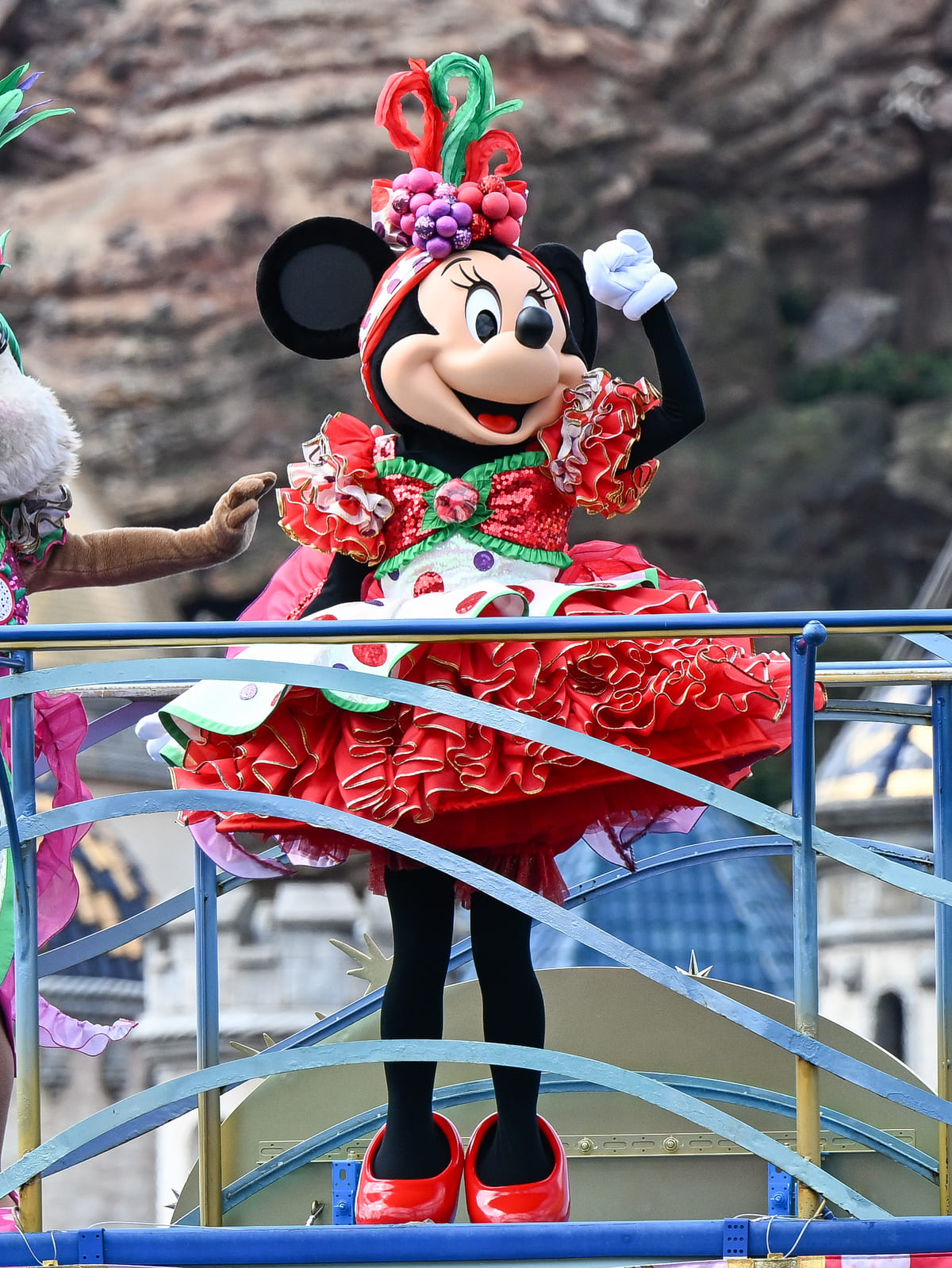 ミニーマウスは、ラズベリーモチーフのコスチューム☆