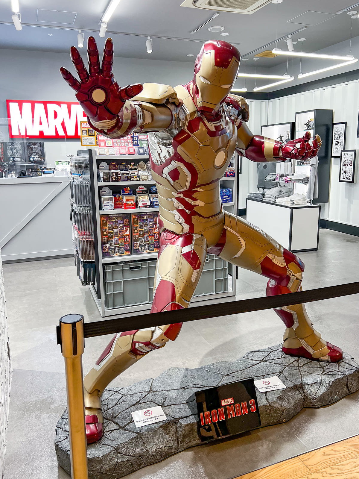 店内にはMARVEL COMICSのアートやアイアンマン3の等身大フィギュアがディスプレイされています。