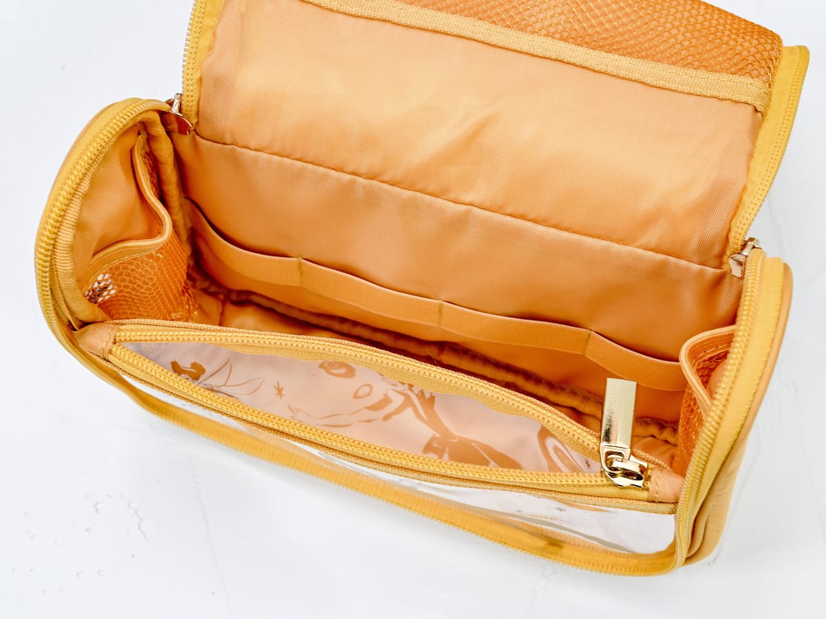 ポーチ内側は小分け収納に便利な構造になっていて、通気性の良いメッシュポケットも備えられています。