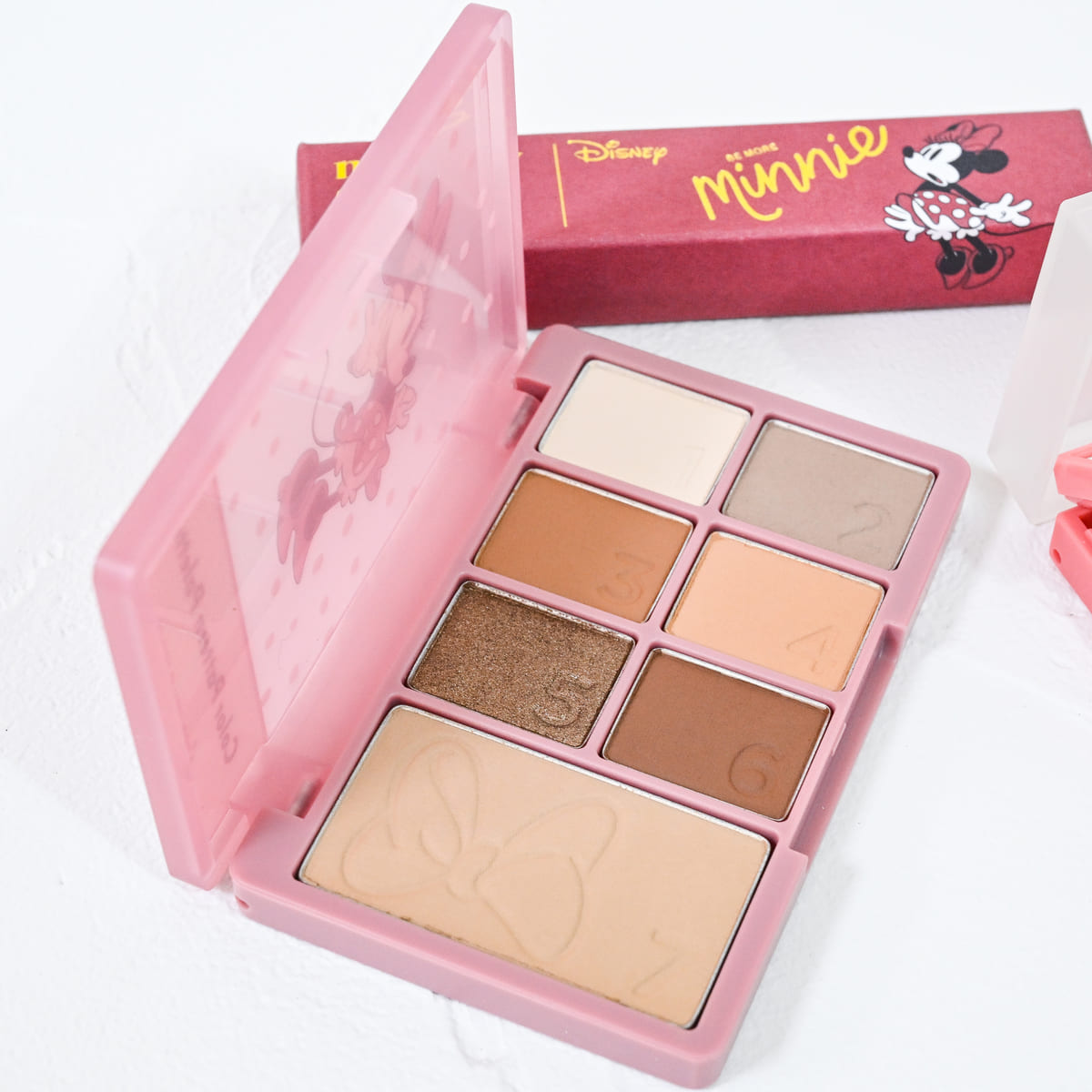 ミニーの手でハートを作ったアートがデザインされたパッケージがかわいいミニー アイシャドウ・チーク マルチキューブ。